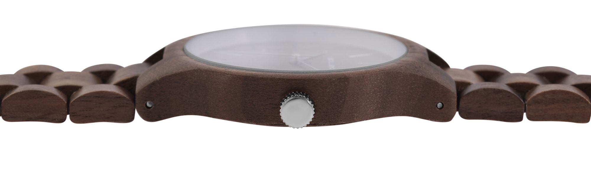 Het analoge herenpolshorloge met 3 wijzers van het merk Excellanc heeft een hoogwaardig kwartsuurwerk. De houten band van walnoothout is 20 mm breed bij de lug en kan worden geopend en gesloten met een zilverkleurige roestvrijstalen vouwsluiting. De totale lengte van het horloge is 22,5 cm. De houten kast, ook gemaakt van walnoothout, met een houten achterkant in dezelfde kleur en mineraalglas, heeft een diameter van 41 mm en een kasthoogte van 10 mm. Een visueel hoogtepunt is het mineraalglas met een zilverkleurige spiegelrand aan de buitenrand. Samen met de zilverkleurige kroon geeft dit het horloge een elegante uitstraling. De wijzerplaat is ook van hout. De wijzers en uurmarkeringen zijn zilverkleurig en passen goed bij de algehele look van het horloge. Tegenwoordig zijn houten horloges een absolute must om elke pols. Dankzij het materiaal is het horloge niet alleen bijzonder duurzaam, maar ook een absolute blikvanger.