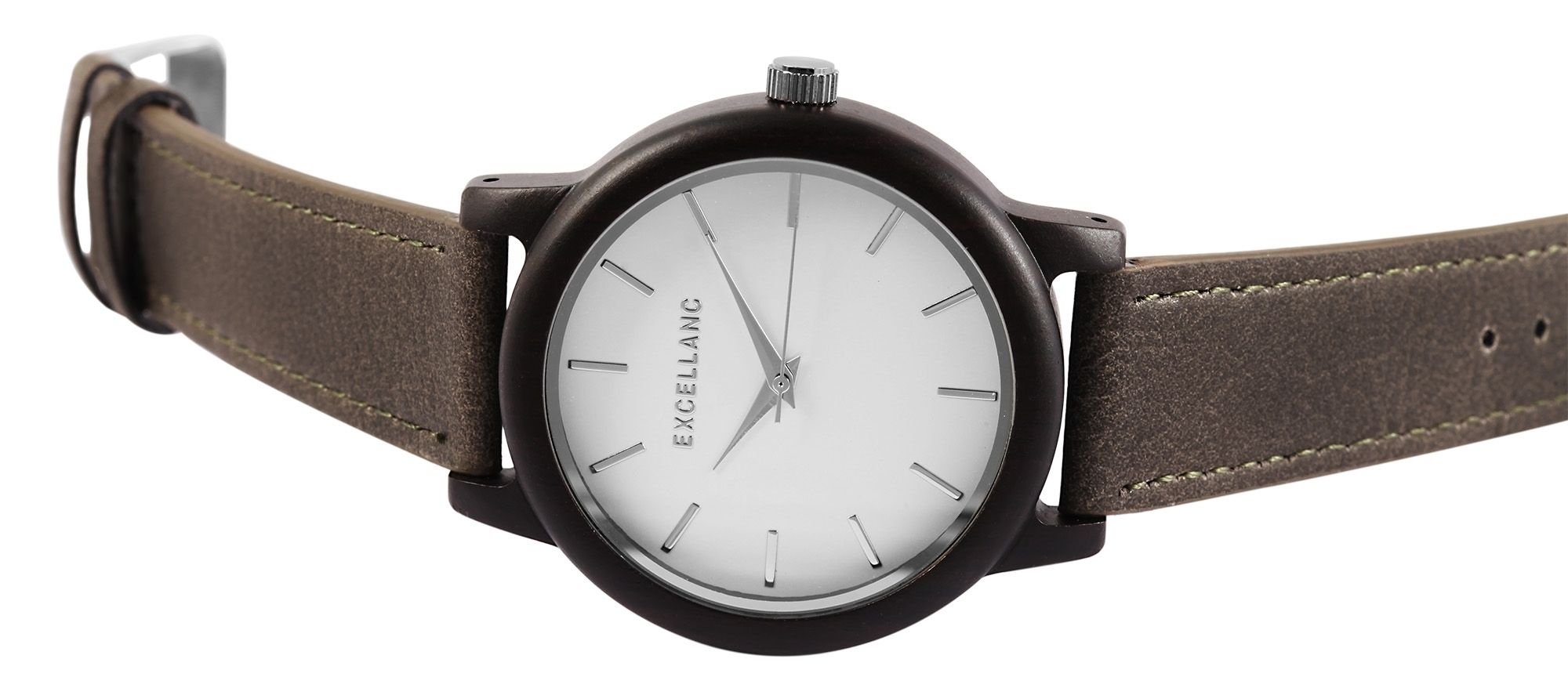Productinformatie "Excellanc houten horloge met imitatieleren band"