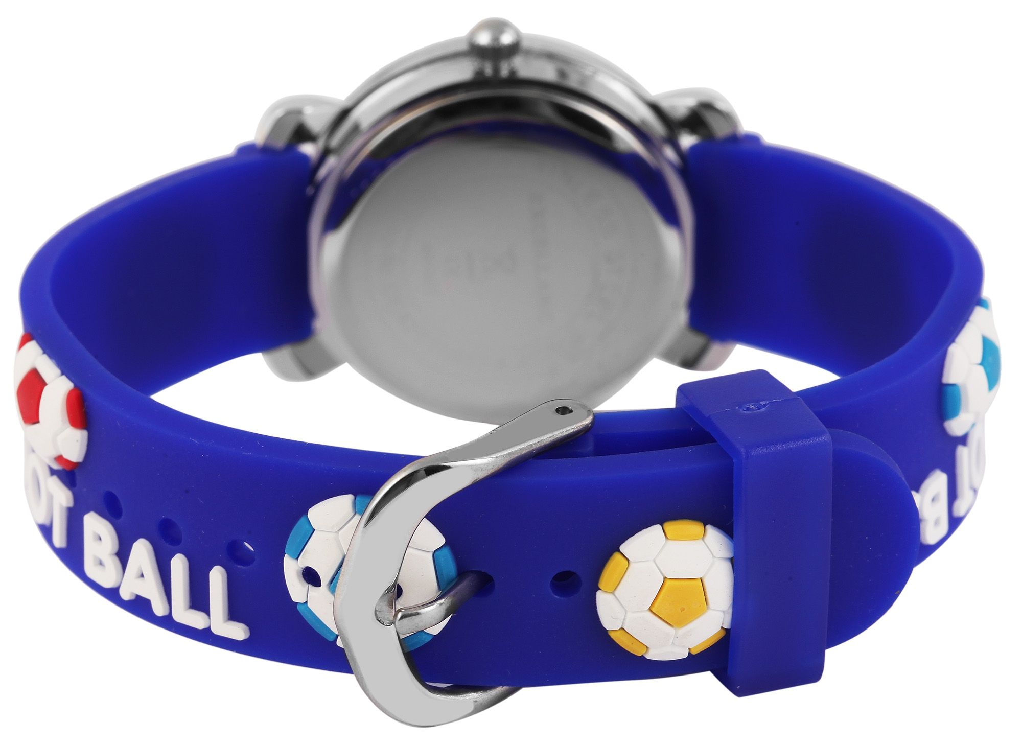 Productinformatie "Excellanc kinderhorloge met donkerblauwe siliconen band en voetbalmotief"