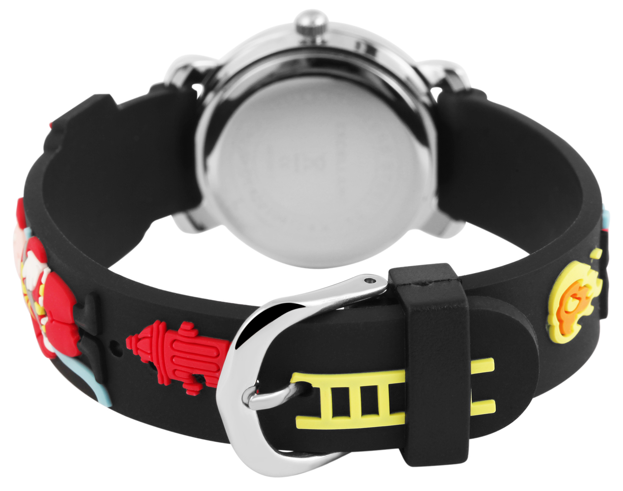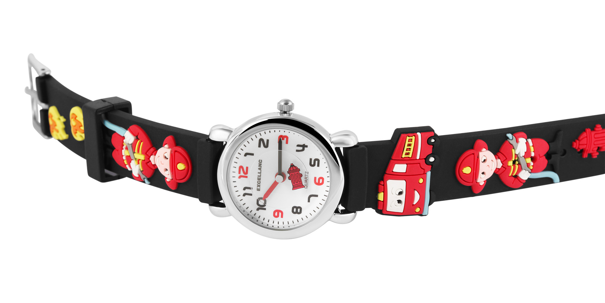 Productinformatie "Excellanc kinderhorloge met zwarte siliconen band en brandweermotief"