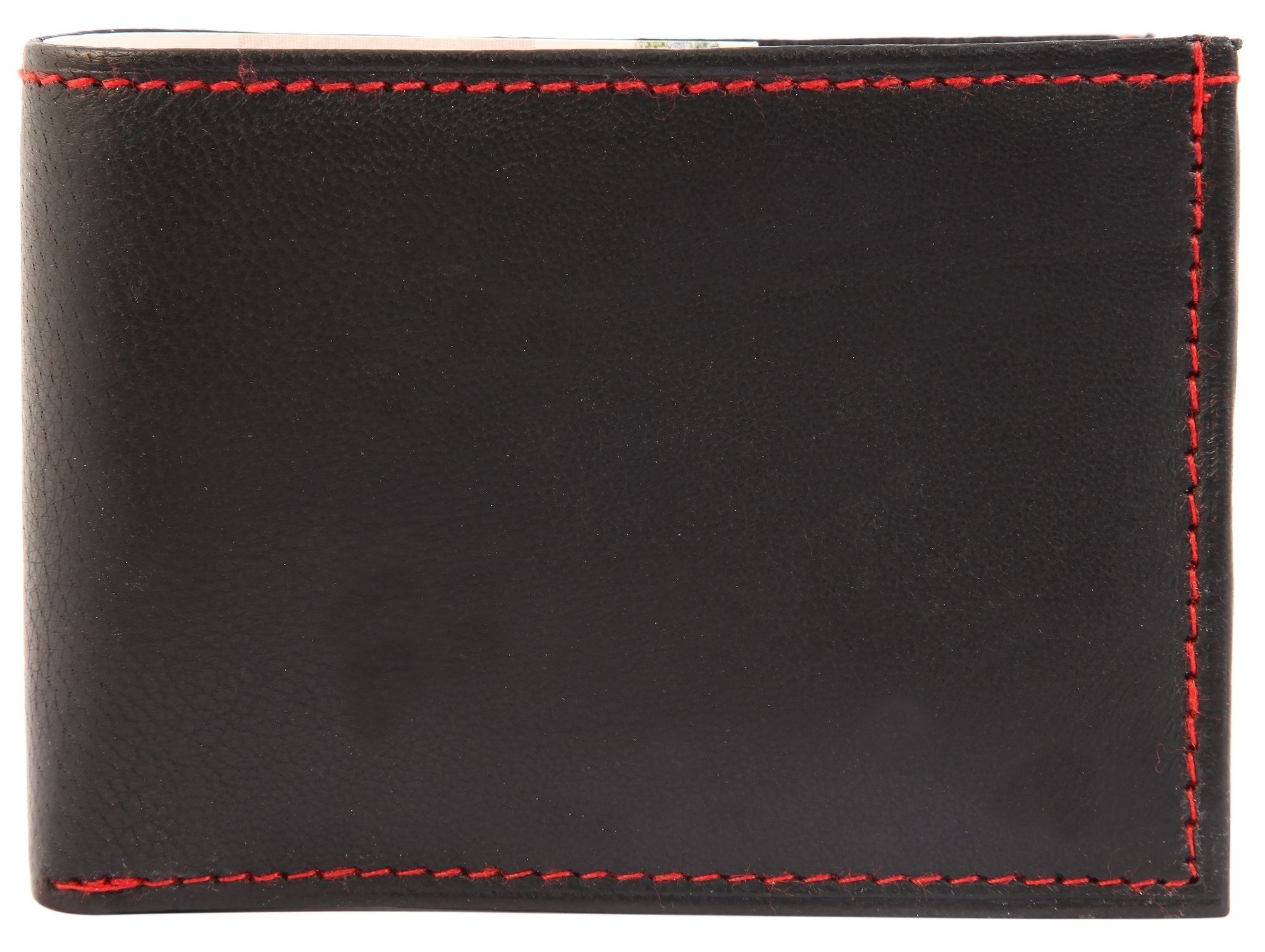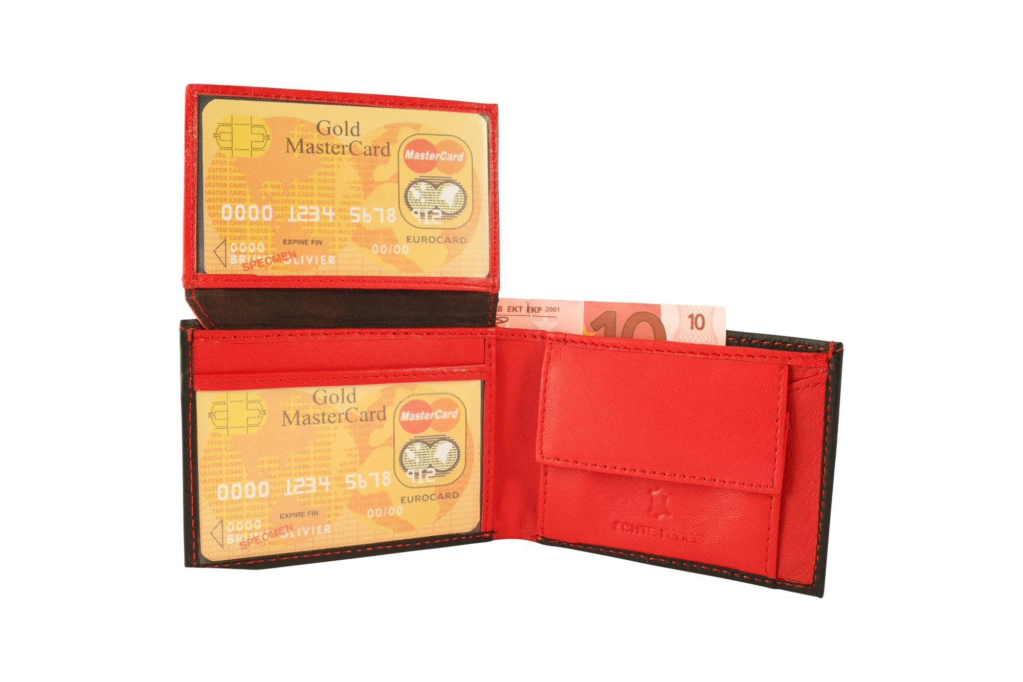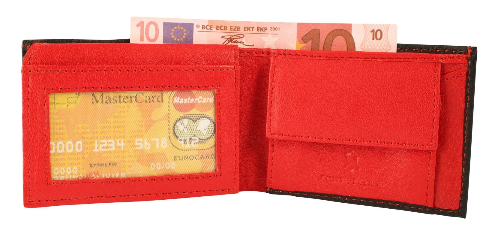 Productinformatie "Excellanc mini portemonnee van echt leer, liggend formaat, zwart/rood"