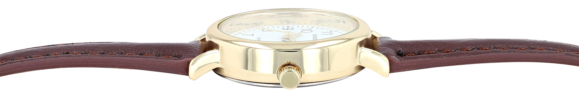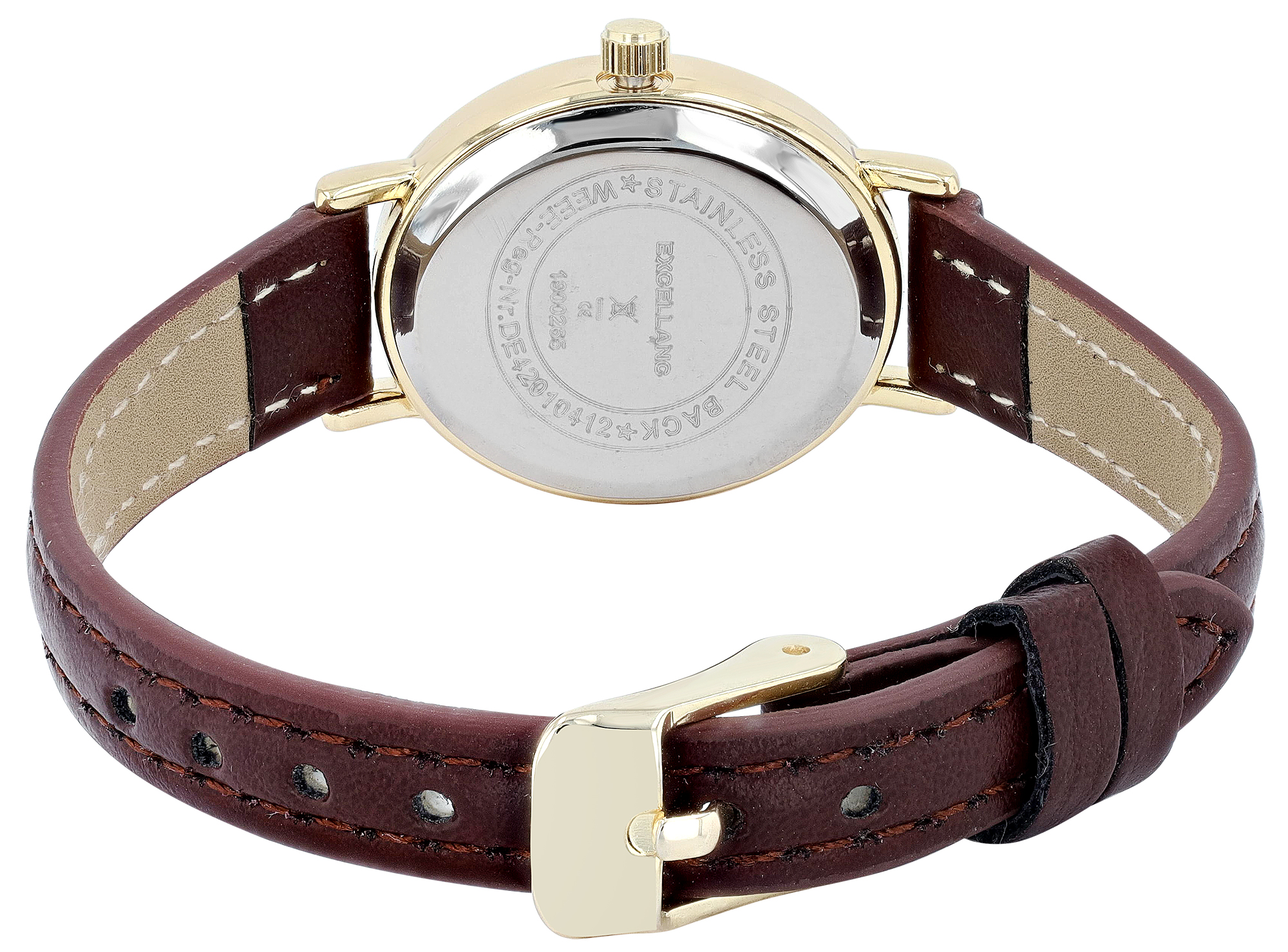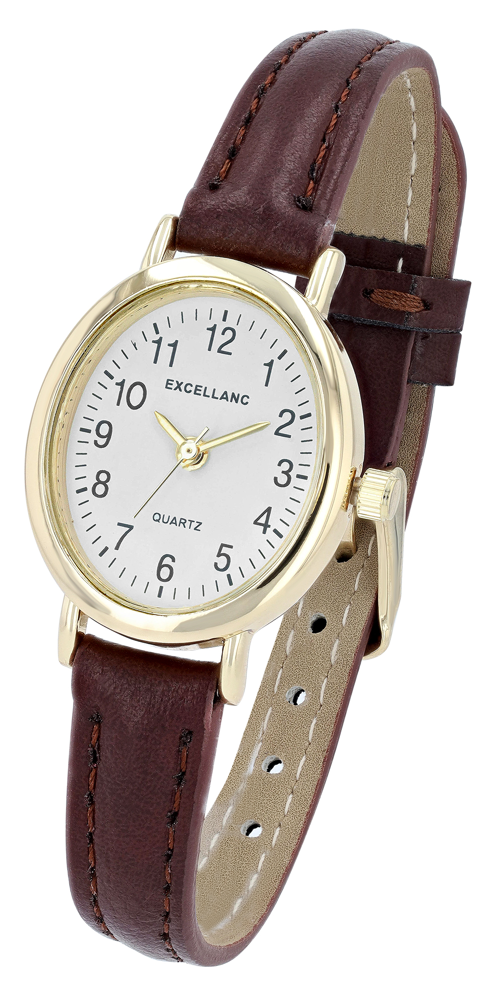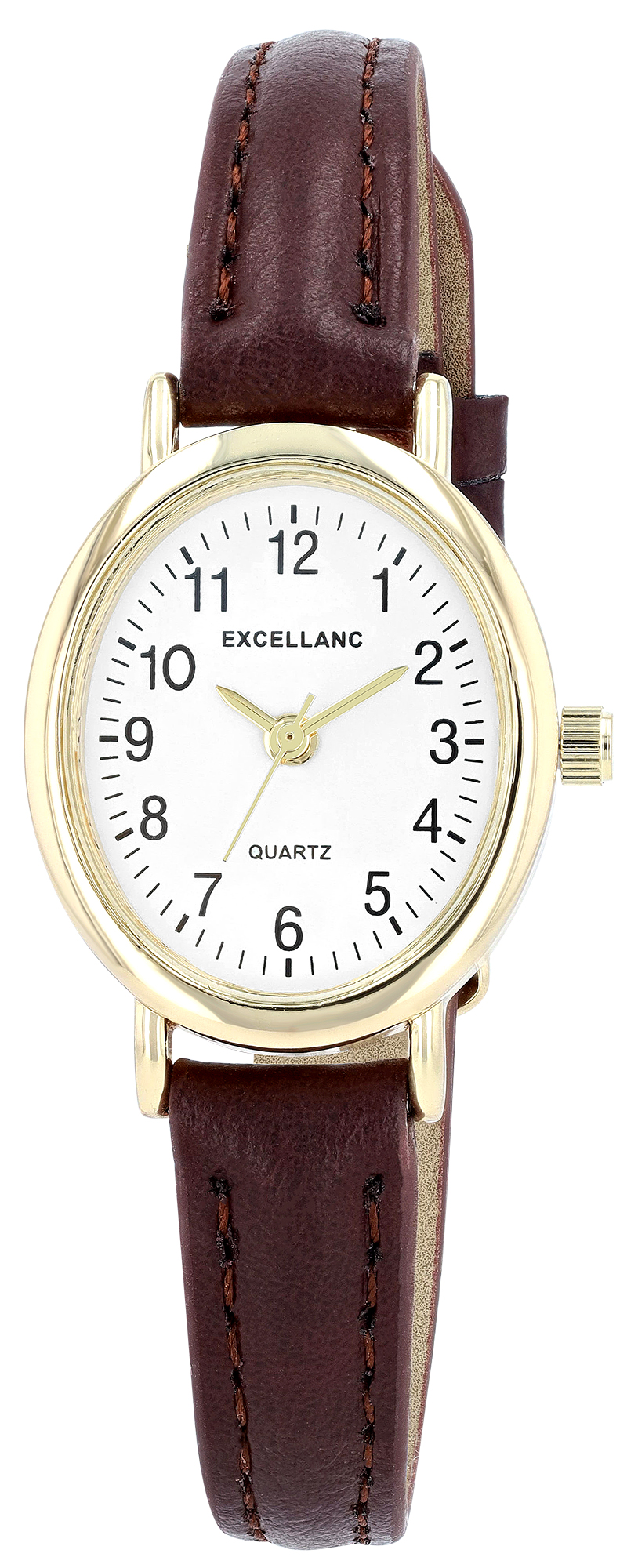 Productinformatie "Excellanc ovale Damenuhr, Lederimitatband, braun/ goldfarben/ weiß"