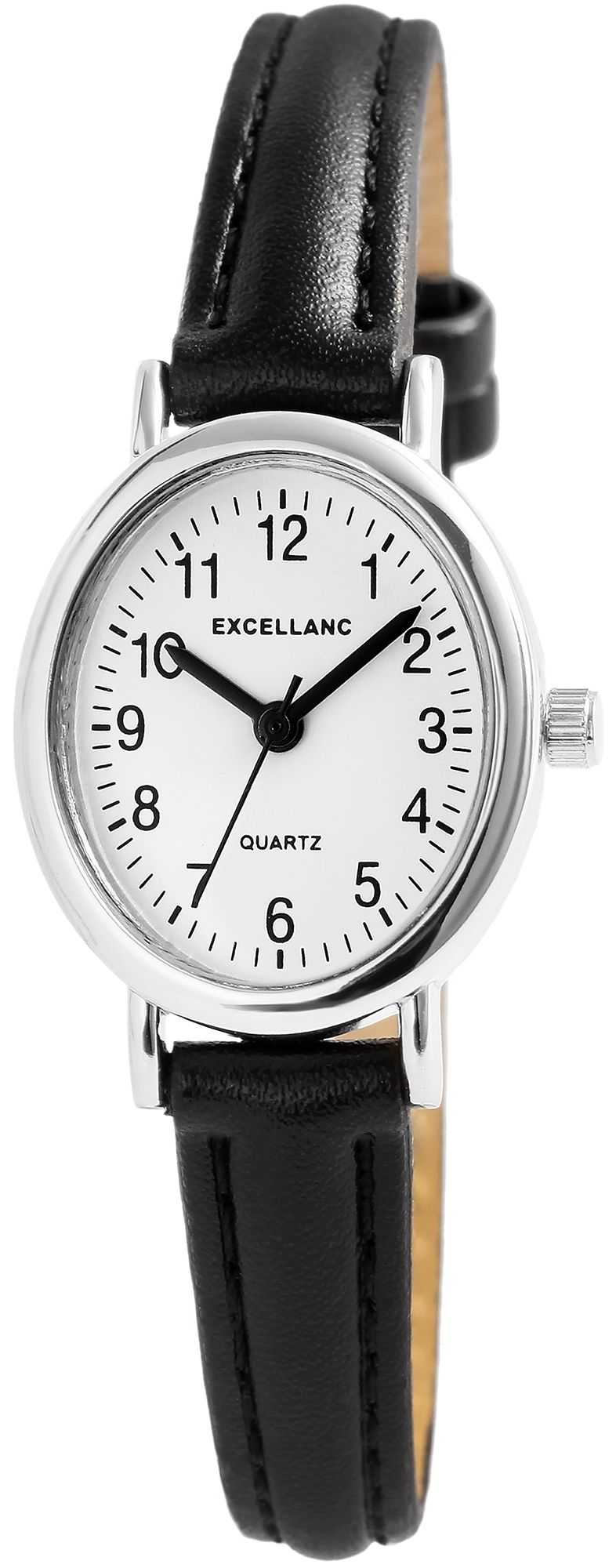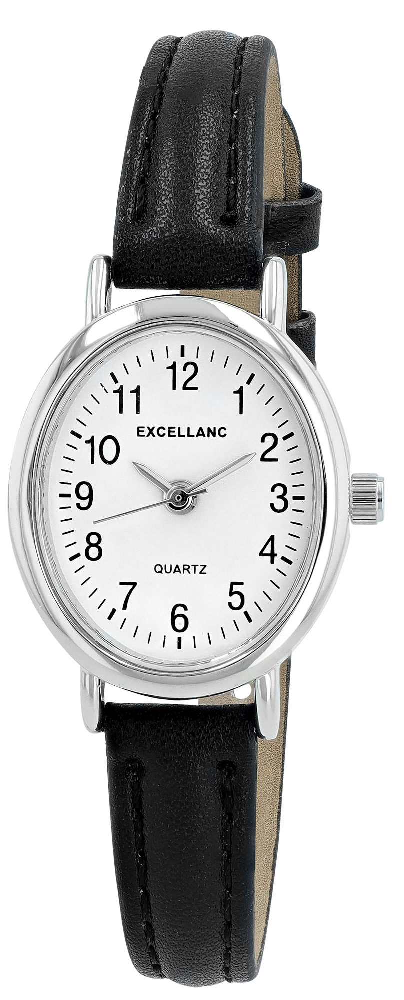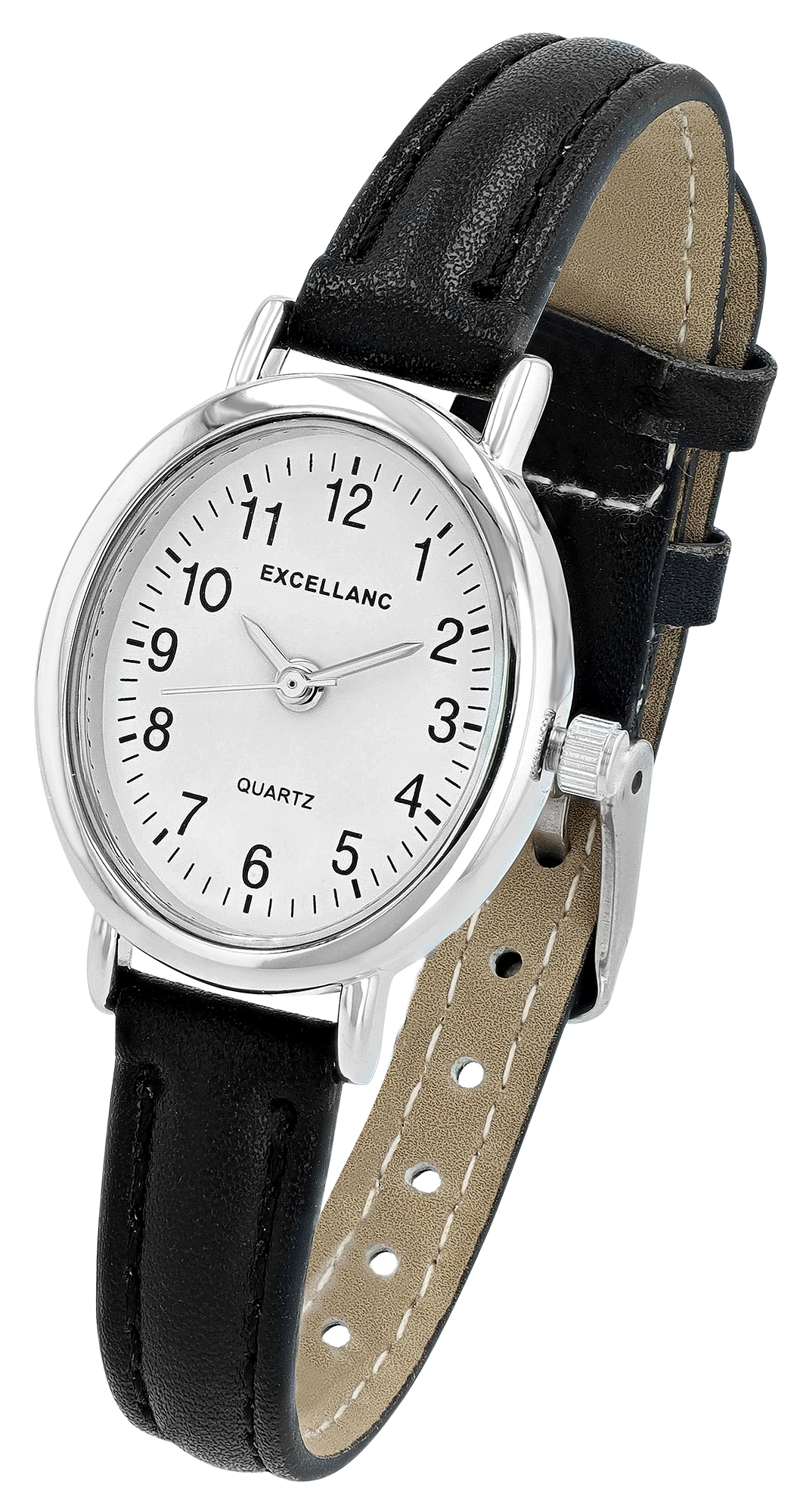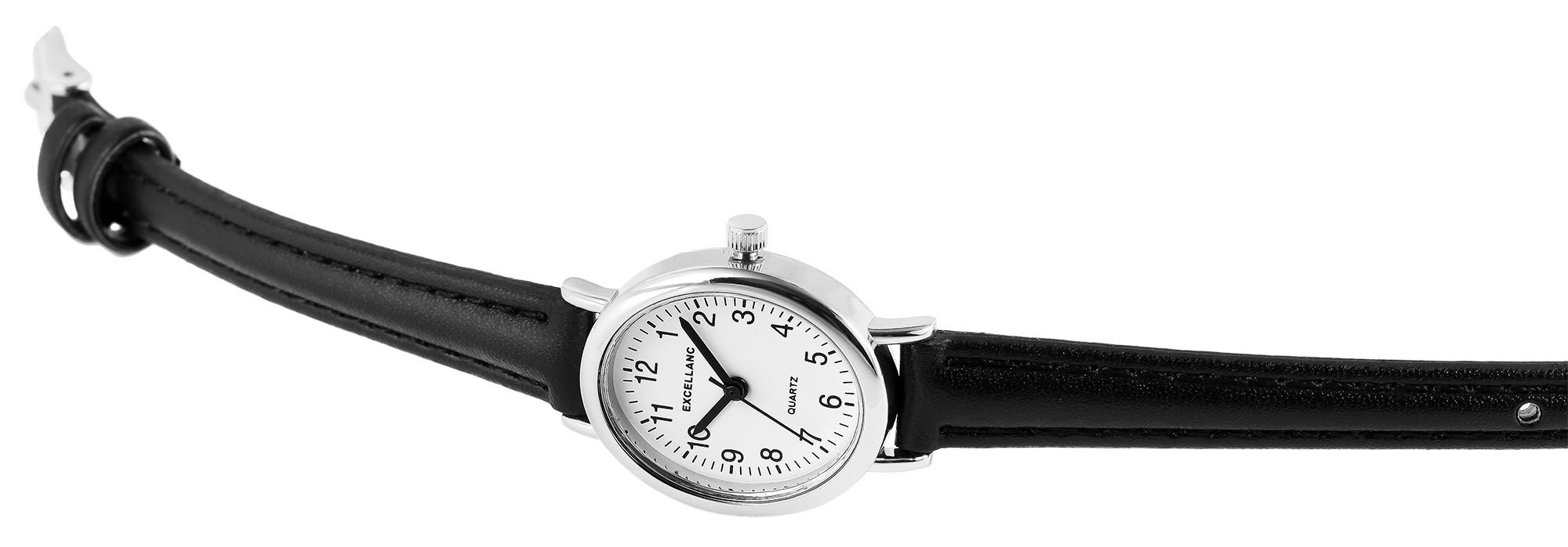 Productinformatie "Excellanc ovale Damenuhr, Lederimitatband, schwarz/ silberfarben/ weiß"