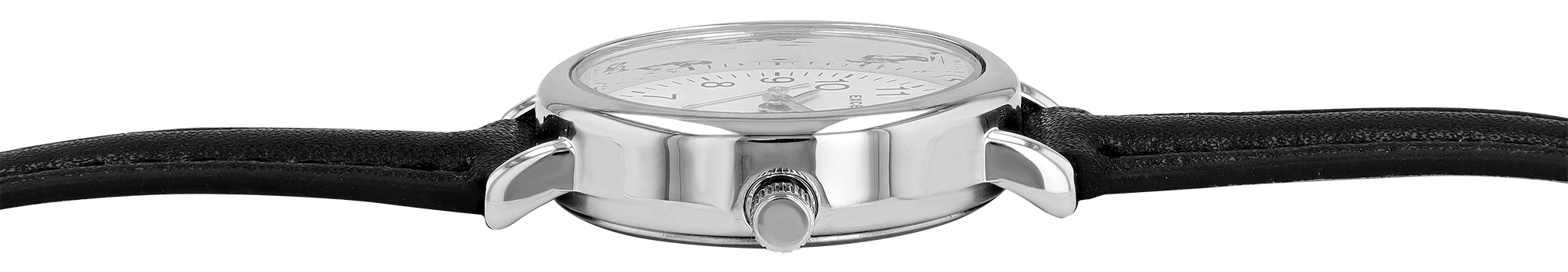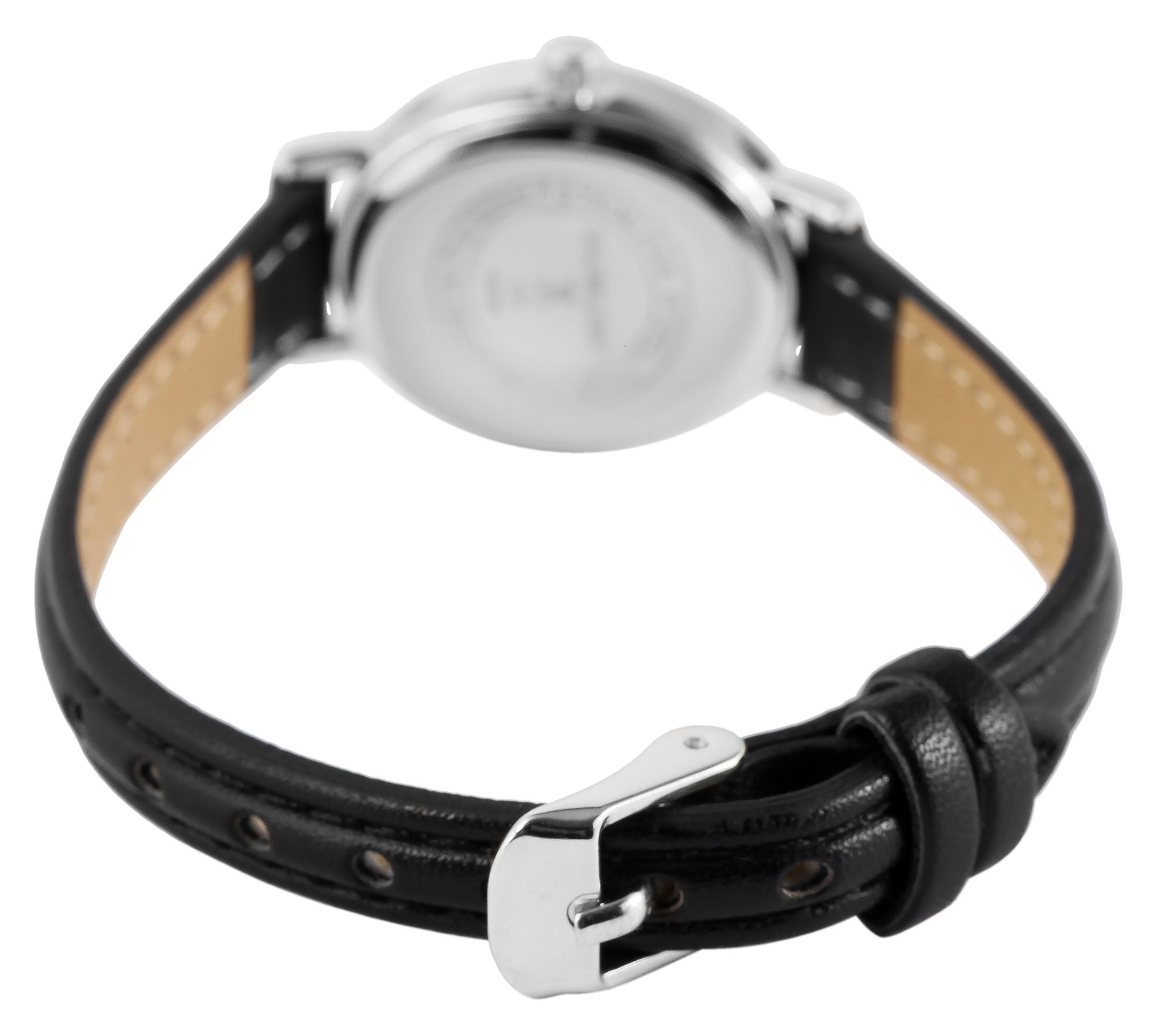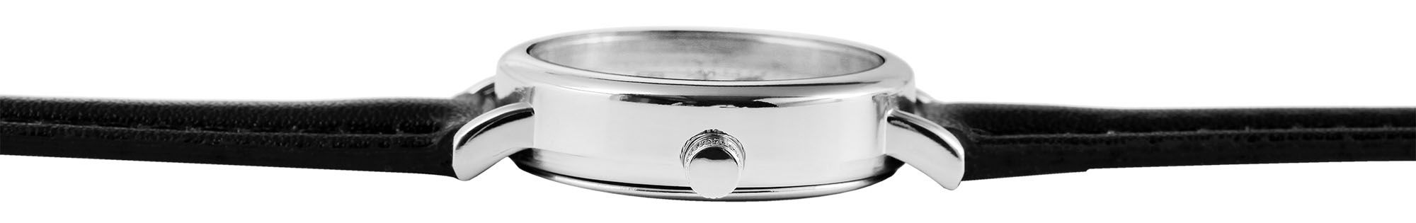De smalle horlogeband van imitatieleer is 10 mm breed bij de lug en biedt een fijn draagcomfort. Het kan snel en veilig worden geopend en gesloten met een praktische gesp. De totale lengte van het horloge is 21,5 cm.