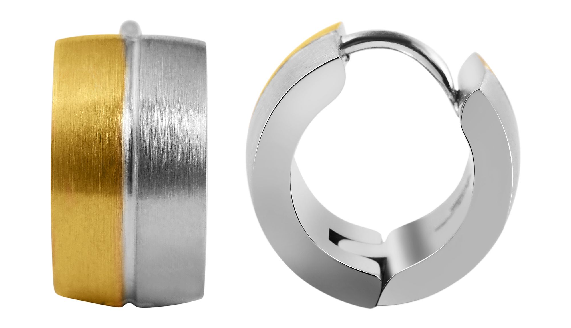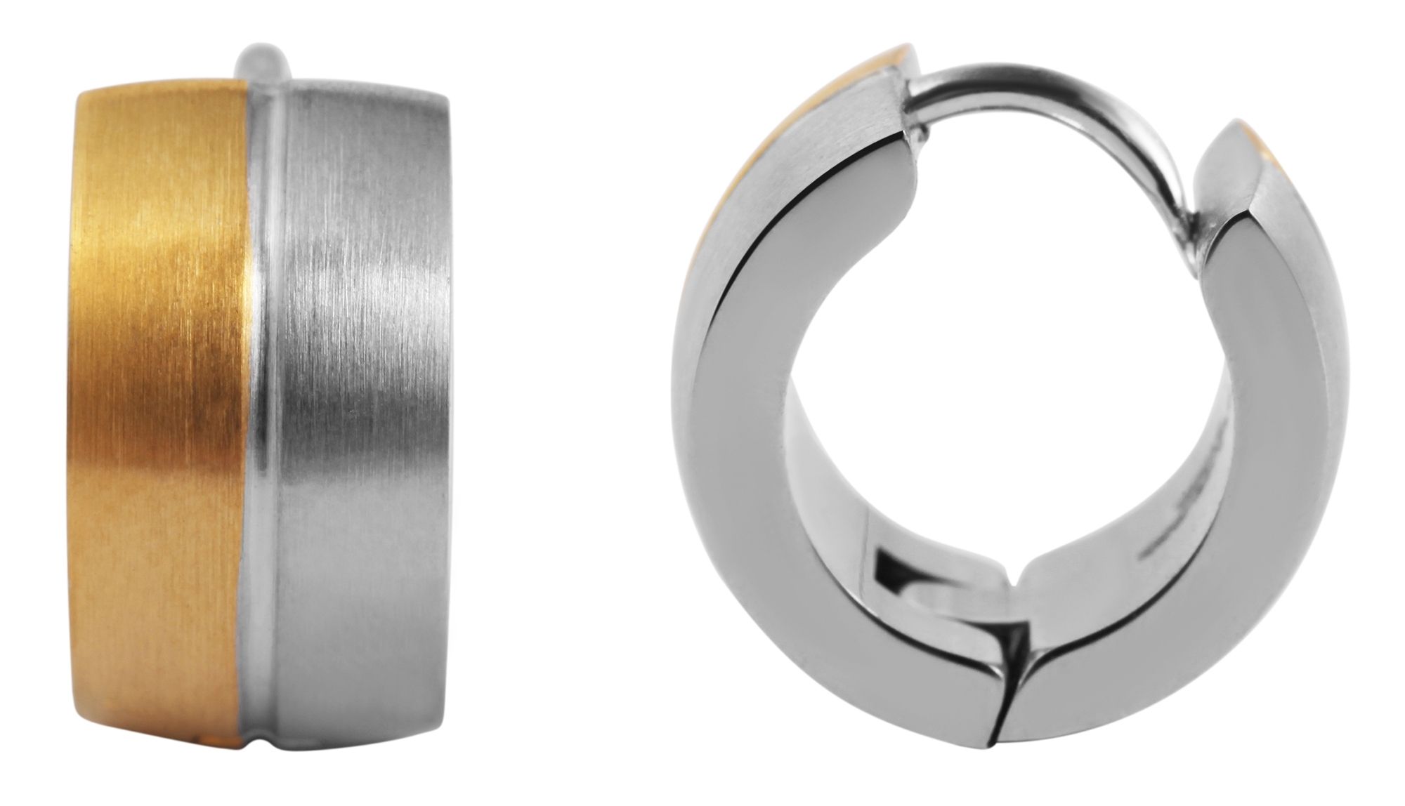 Productinformatie ""Fabelle" Edelstahl Klapp-Creolen Ø 9 mm, matt, bicolor (gold- & silberfarben)"