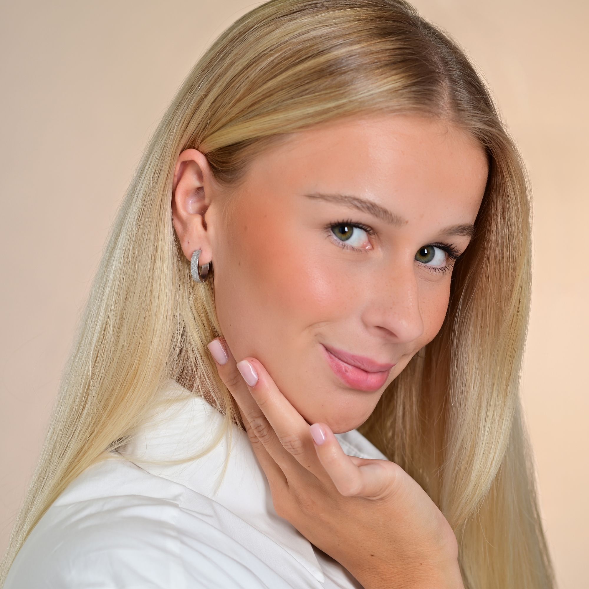 Ontdek de veelzijdigheid van onze collectie scharnierende hoepeloorbellen, gemaakt van hoogwaardig roestvrij staal, dat subtiele elegantie combineert met een moderne twist. Deze exclusieve oorbellen zijn verkrijgbaar in een palet van verfijnde tinten: klassiek zilverkleurig, warm roségoudkleurig, verfijnd goudkleurig en opvallend diepzwart. Een bijzonder designkenmerk: het innovatieve gezandstraalde oppervlak. Deze unieke afwerking geeft elke Creole een fascinerende, matte textuur die het licht op een subtiele maar effectieve manier reflecteert. Dit tactiele en visuele accent onderscheidt ze van conventionele glanzende ontwerpen en geeft ze een speciale, eigentijdse esthetiek.