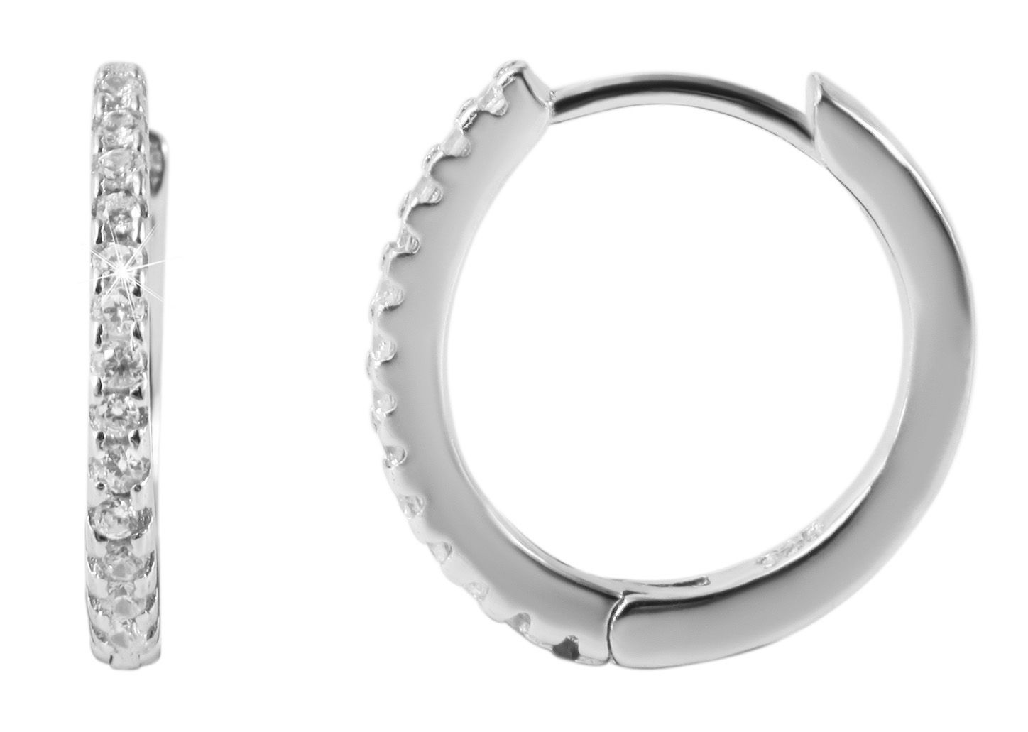 Productinformatie ""Finja", 925/- Echt Silber Klappcreolen mit Zirkoninabesatz, silberfarben rhodiniert"
