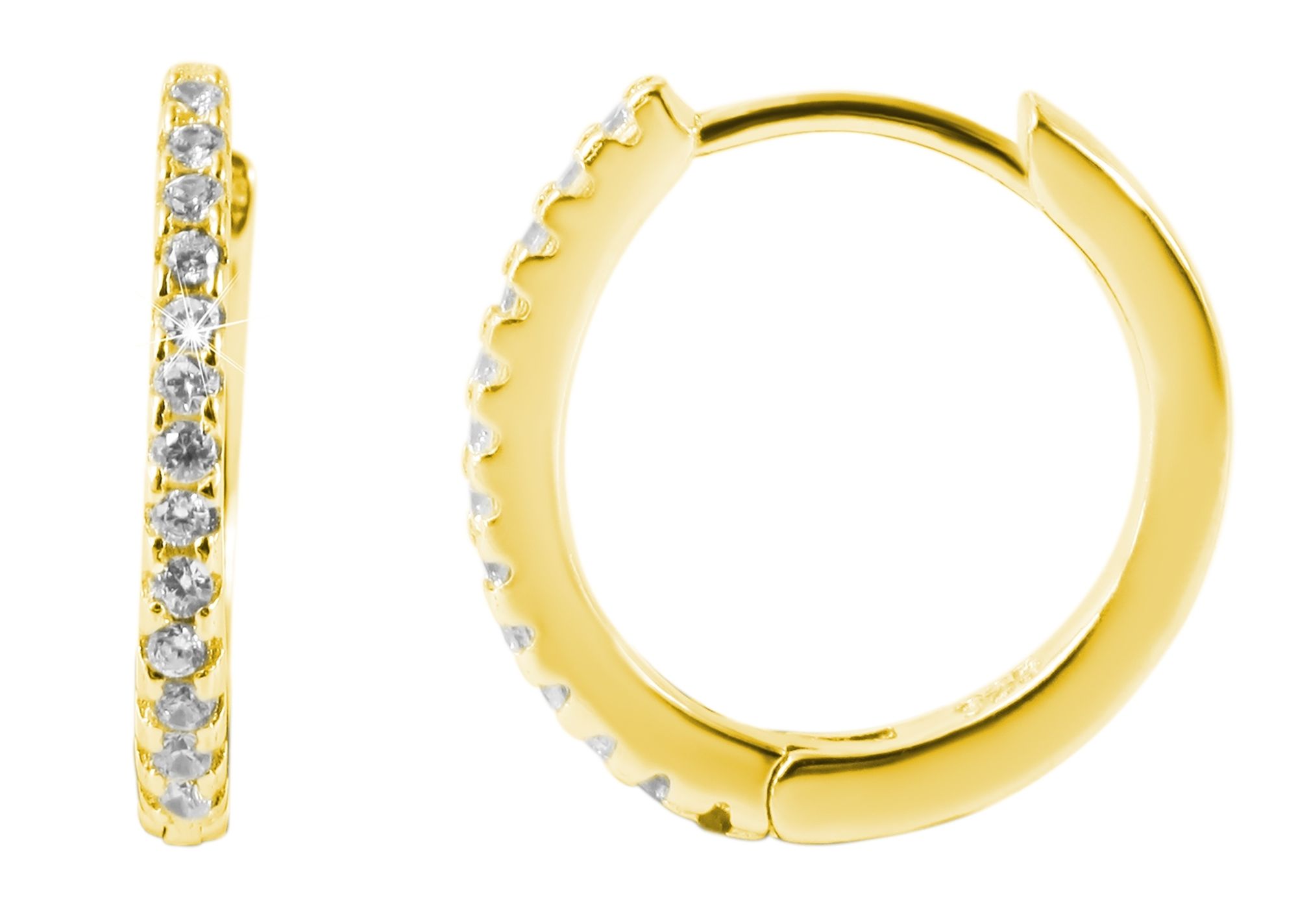 Productinformatie ""Finja", 925/- Echt Silber Klappcreolen mit Zirkoninabesatz, vergoldet"