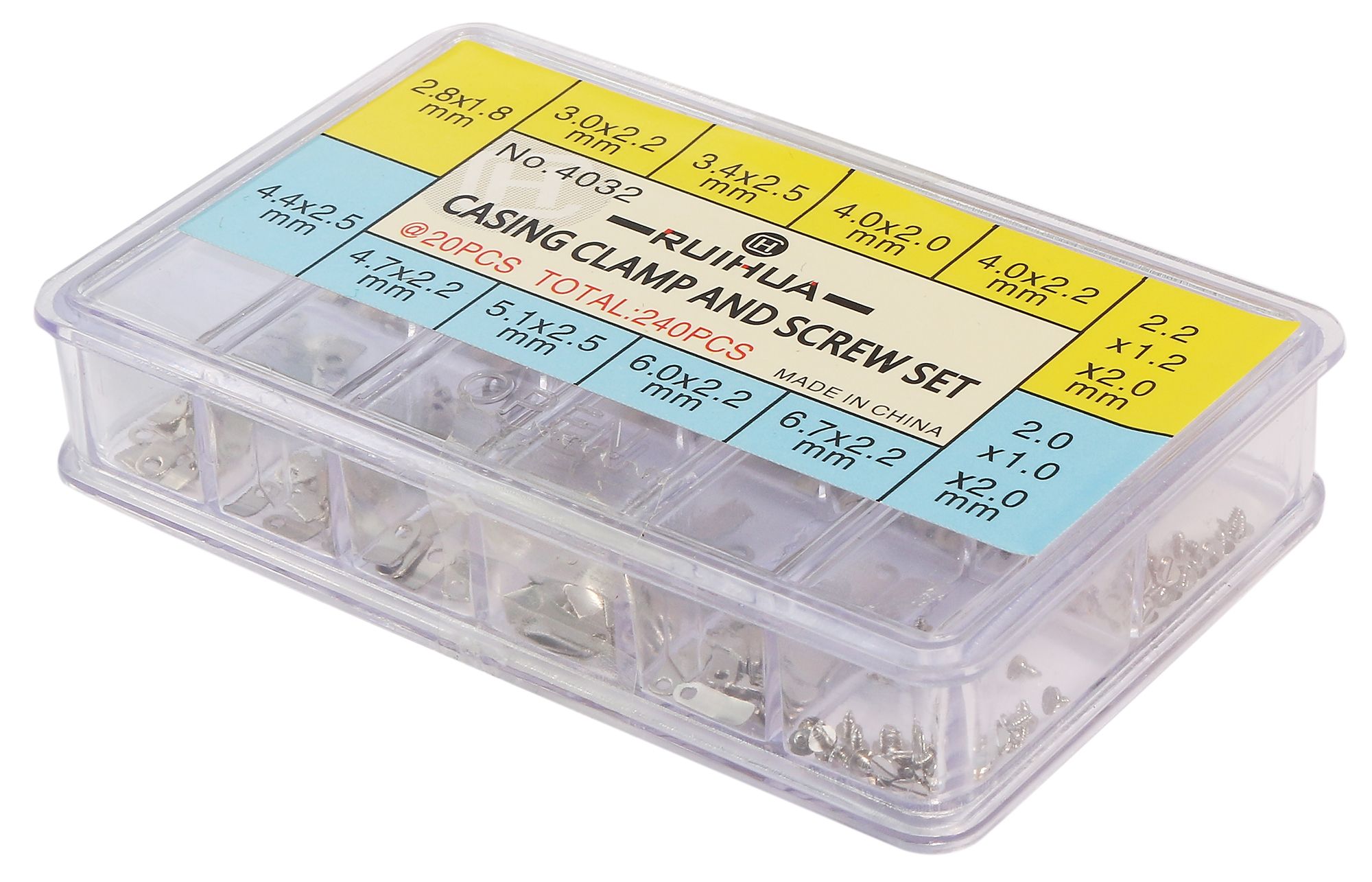 Optimaliseer je horlogewerk met onze kastklem- en schroefset, die een uitgebreide selectie nauwkeurige schroeven voor verschillende toepassingen biedt. Deze set bevat nietjes en schroeven van hoge kwaliteit in de volgende maten: