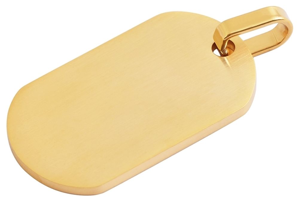 De goudkleurige gegraveerde hanger van het merk Akzent is gemaakt van roestvrij staal en heeft een matte afwerking. De buitenranden van de hanger zijn afgerond, hij heeft een lengte van 38 mm, een breedte van 22 mm en een materiaaldikte van 2 mm. De roestvrijstalen hanger biedt genoeg ruimte voor allerlei gravures, waardoor het het perfecte gepersonaliseerde cadeau is voor speciale herinneringen en een speciaal persoon. Dankzij een ovaal oogje kan de hanger aan verschillende kettingen worden bevestigd. Dankzij het robuuste materiaal en de hoogwaardige afwerking belooft de juwelenhanger een lange levensduur.
