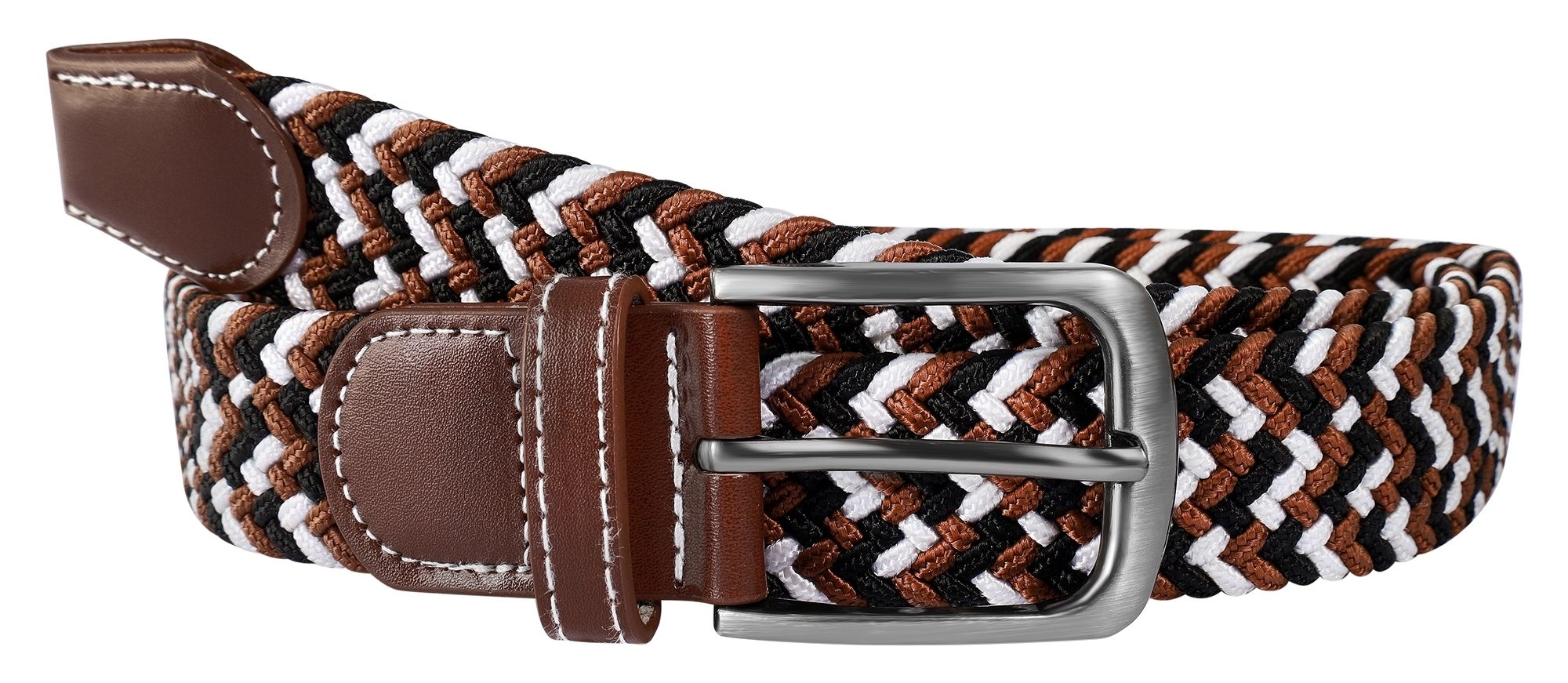Onze nieuwe stoffen riem is een uiterst veelzijdig accessoire dat perfect past bij een sportieve look. Onze riem is gemaakt van hoogwaardige materialen en wordt gekenmerkt door het gevlochten patroon in de kleuren bruin, zwart en wit. De gevlochten riem krijgt een elegante touch door het bruine imitatieleer aan beide uiteinden van de riem.