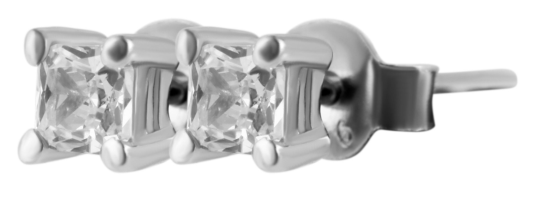 De gerhodineerde oorstekers zijn gemaakt van 925 Sterling zilver, zijn aanslagbestendig en hebben een stralende glans. Ze bestaan uit een fonkelende zirkonia steen in een prong zetting. Dit maakt de oorbellen eenvoudig en tijdloos, maar ze stralen toch een grote elegantie uit. De oorbellen kunnen aan de achterkant van het oorgat worden vastgezet met een vleugelschroef van echt zilver. De maat resulteert uit een lengte van mm, een breedte van 3 mm en een dikte van 3 mm.