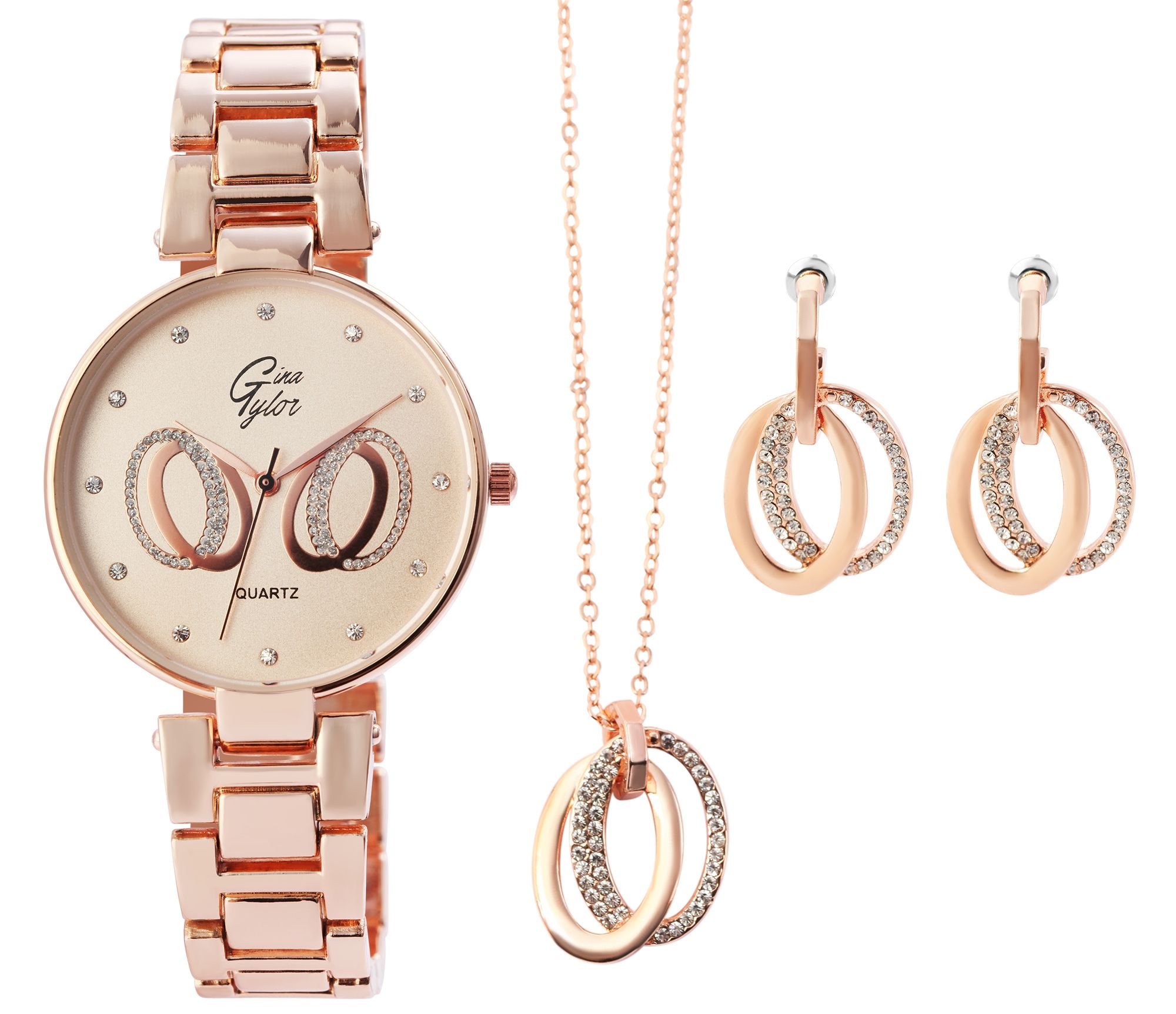 Gina Tylor cadeauset met metalen polshorloge en sieradenset bestaande uit halsketting en oorbellen
