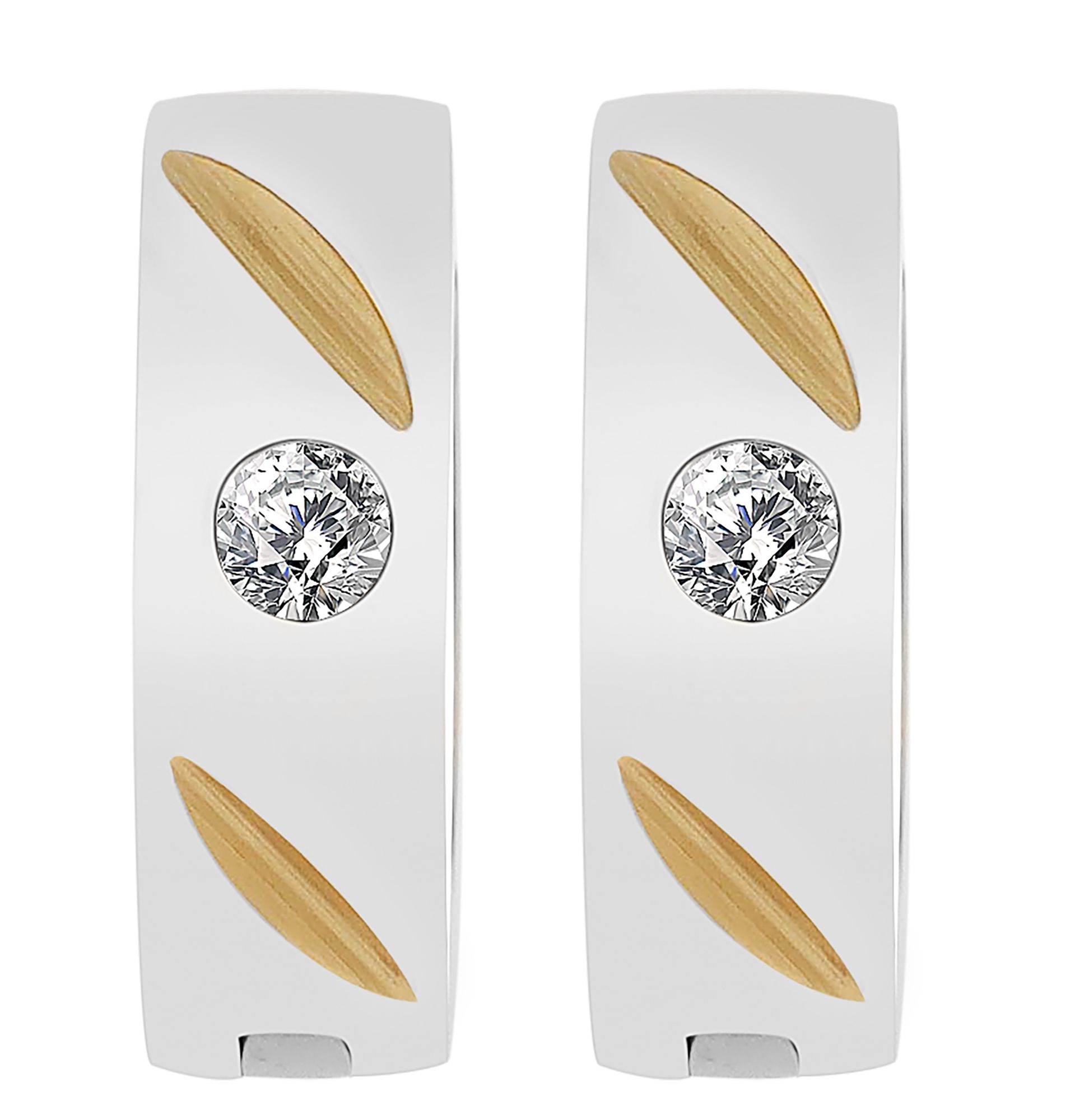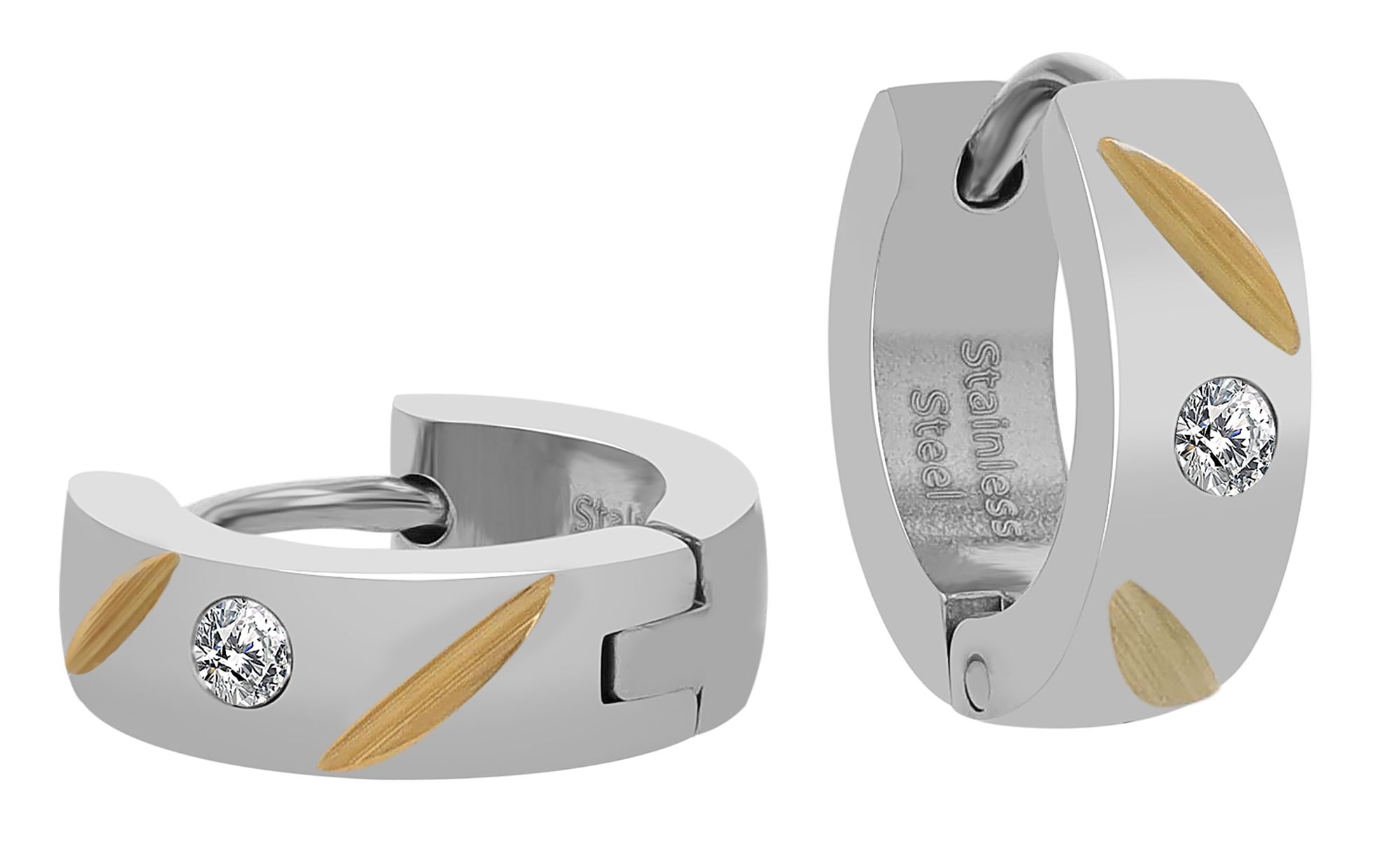 Productinformatie ""Glinda" roestvrijstalen oorbellen met scharnier, Simili, Ø 9 mm, tweekleurig"