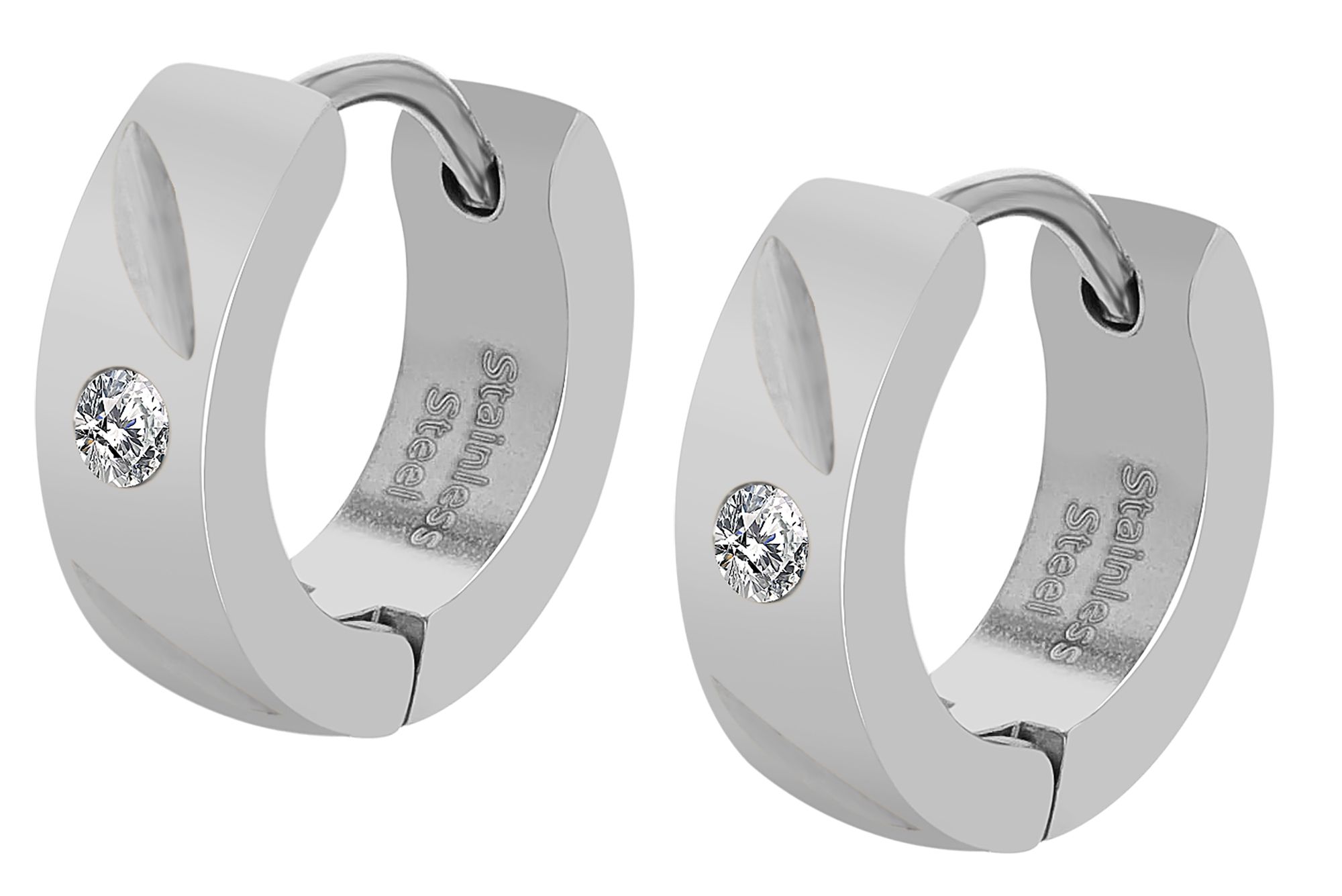 Productinformatie ""Glinda" roestvrijstalen scharnierende hoepel oorbellen, Simili, Ø 9 mm, zilverkleurig"