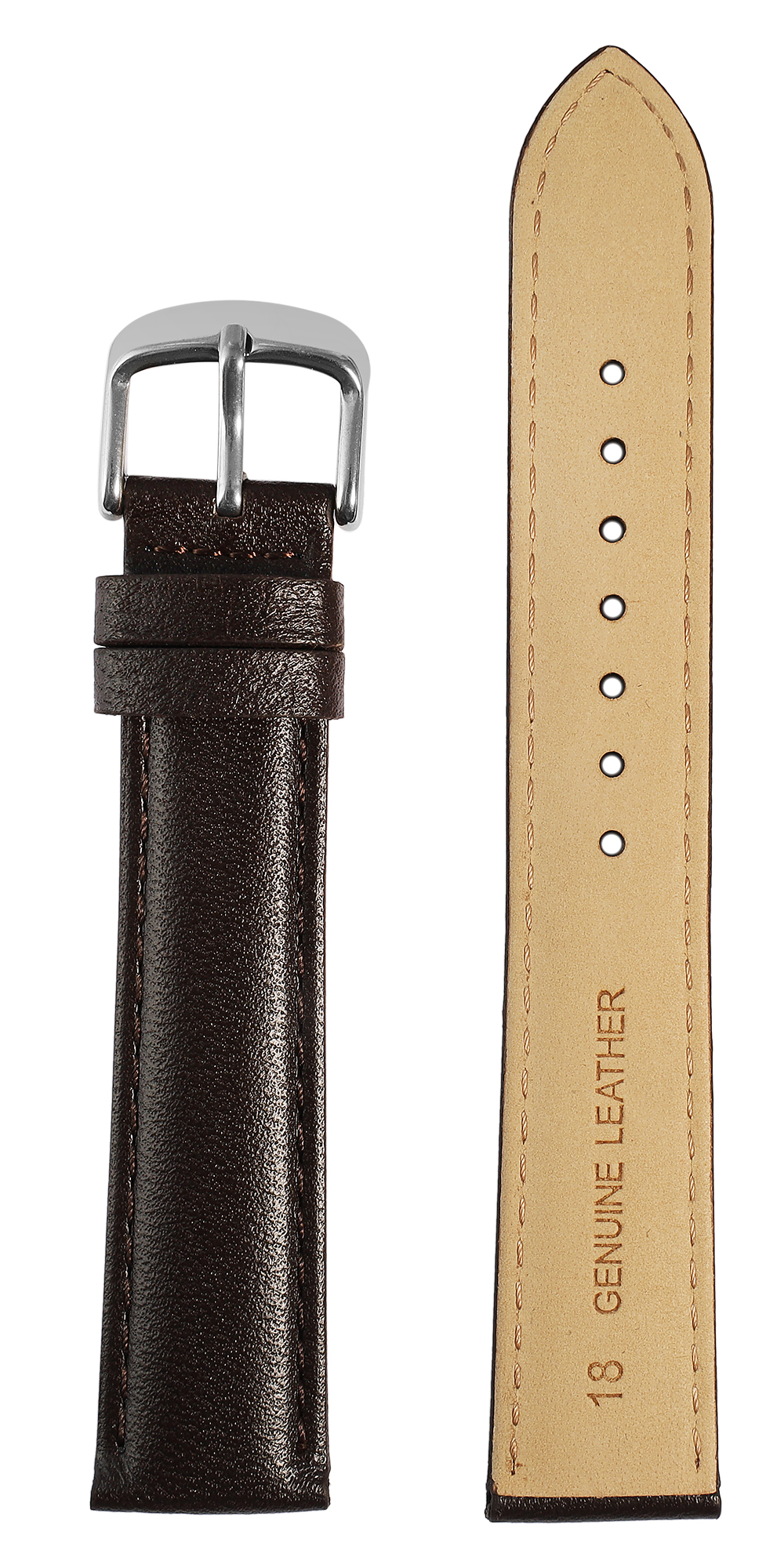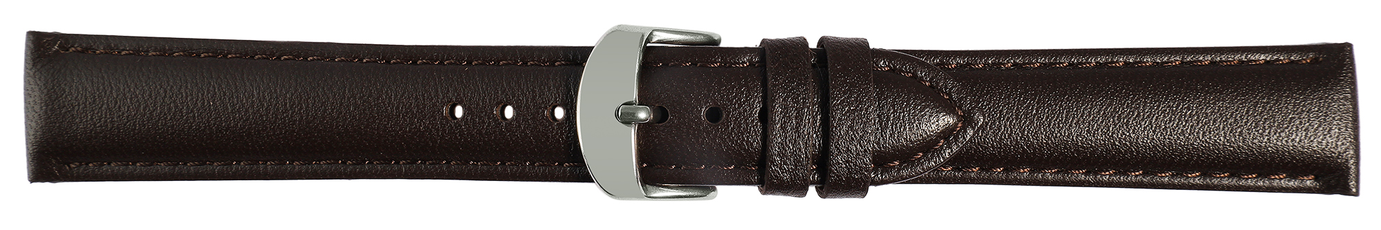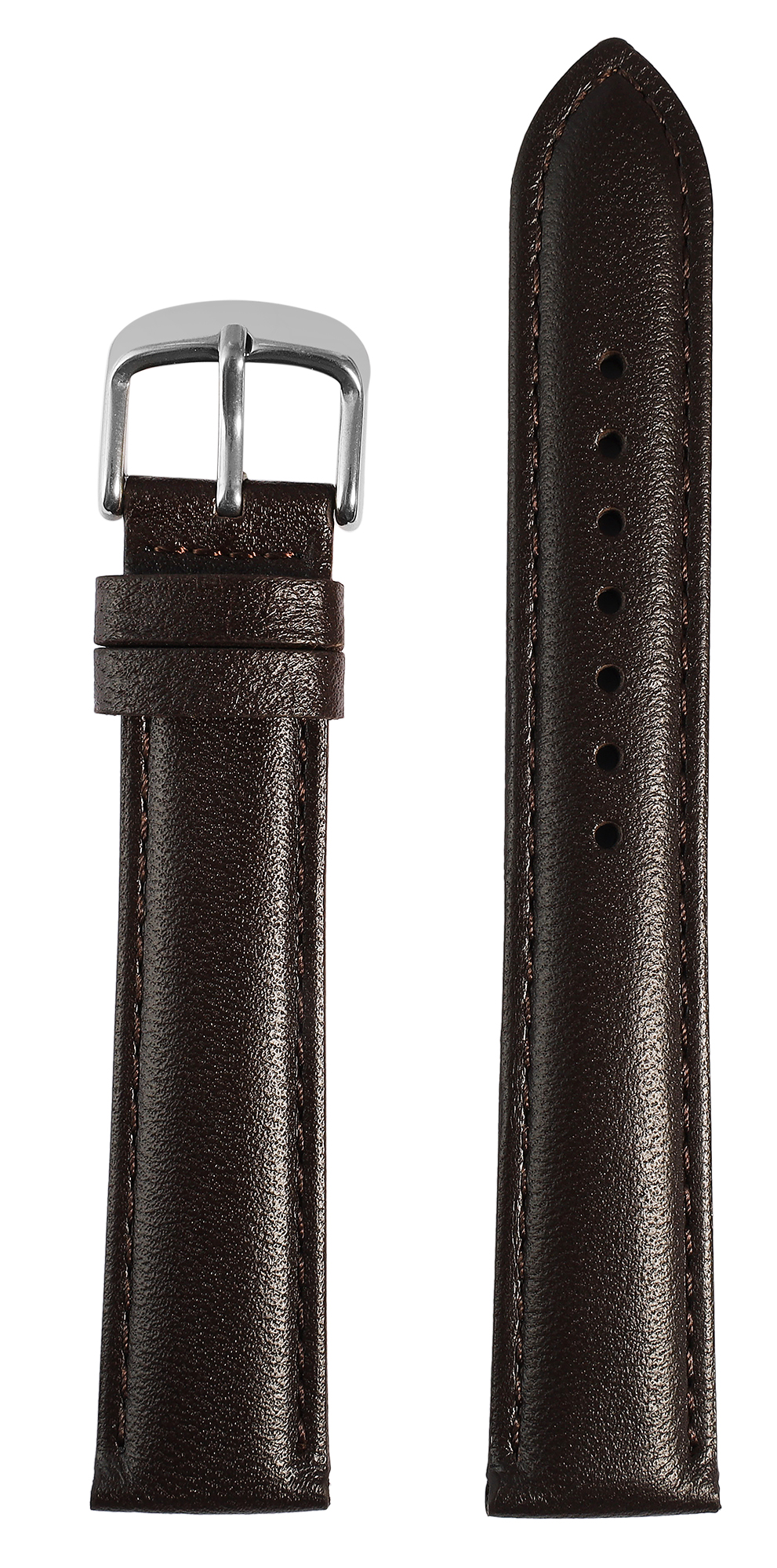 Deze donkerbruine horlogeband van echt leer van hoge kwaliteit is verkrijgbaar met een breedte van 12 mm, 14 mm, 16 mm, 18 mm, 20 mm, 22 mm en 24 mm en is dus geschikt voor verschillende horlogemodellen.