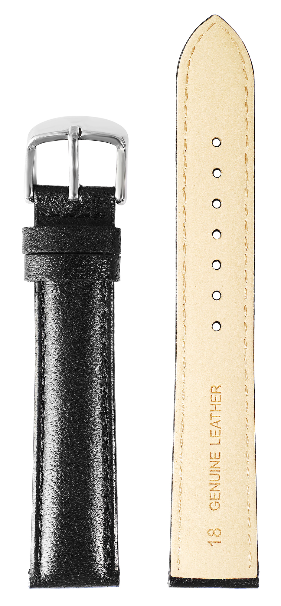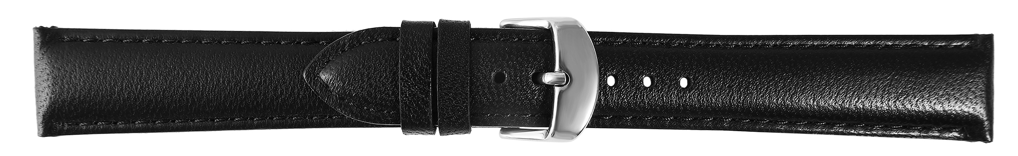 Productinformatie "Gr 18 mm horlogeband van echt leer in zwart, gestikt"