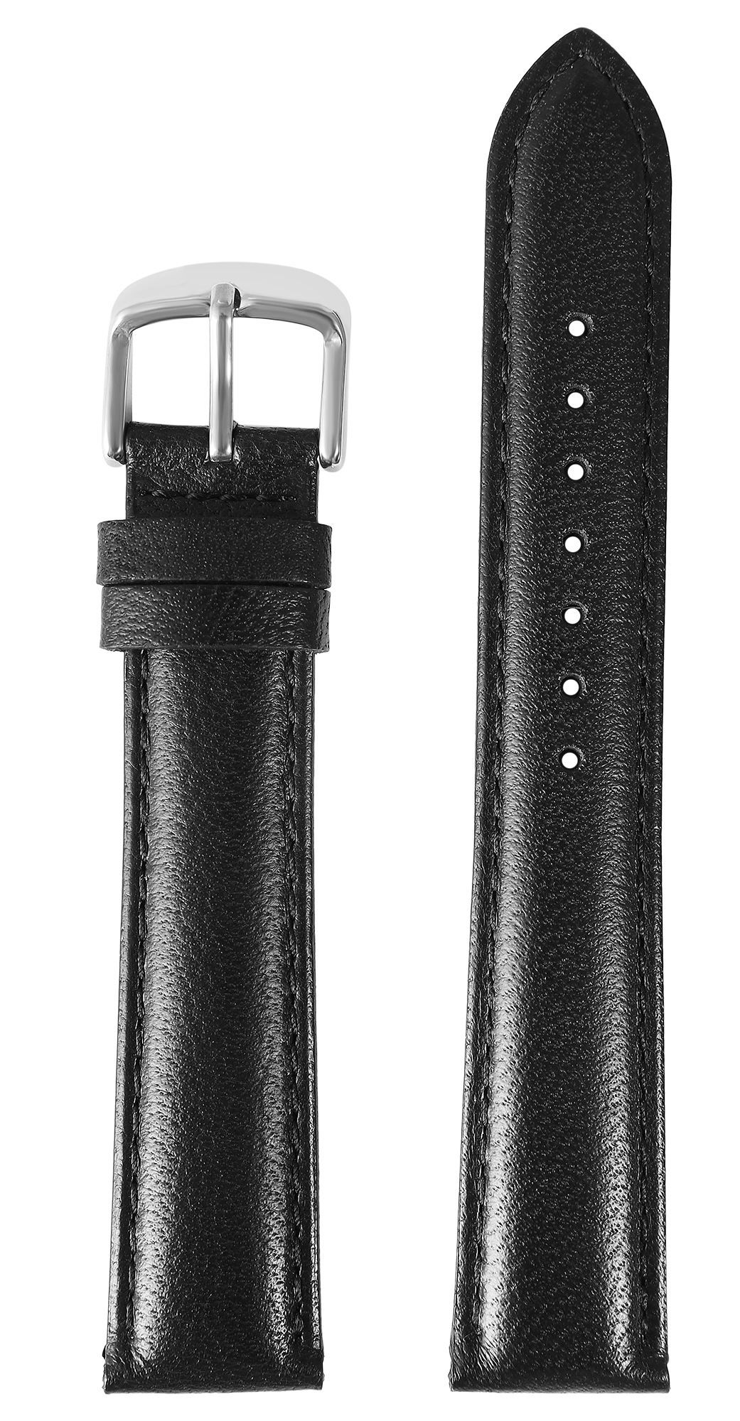 Dit horlogebandje is gemaakt van echt leer van hoge kwaliteit in de kleur zwart en is verkrijgbaar met een breedte van 12 mm, 14 mm, 16 mm, 18 mm, 20 mm, 22 mm en 24 mm, waardoor het geschikt is voor verschillende horlogemodellen.