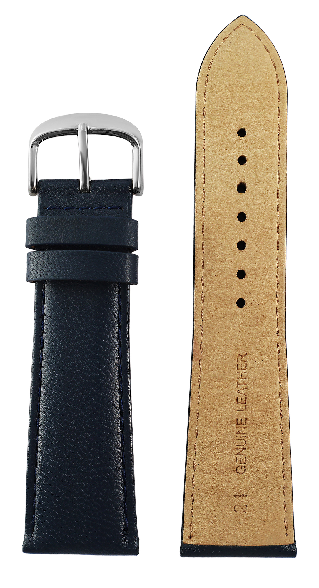 Dit horlogebandje is gemaakt van hoogwaardig echt leer in donkerblauw en is verkrijgbaar met een breedte van 12 mm, 14 mm, 16 mm, 18 mm, 20 mm, 22 mm en 24 mm, waardoor het geschikt is voor verschillende horlogemodellen.