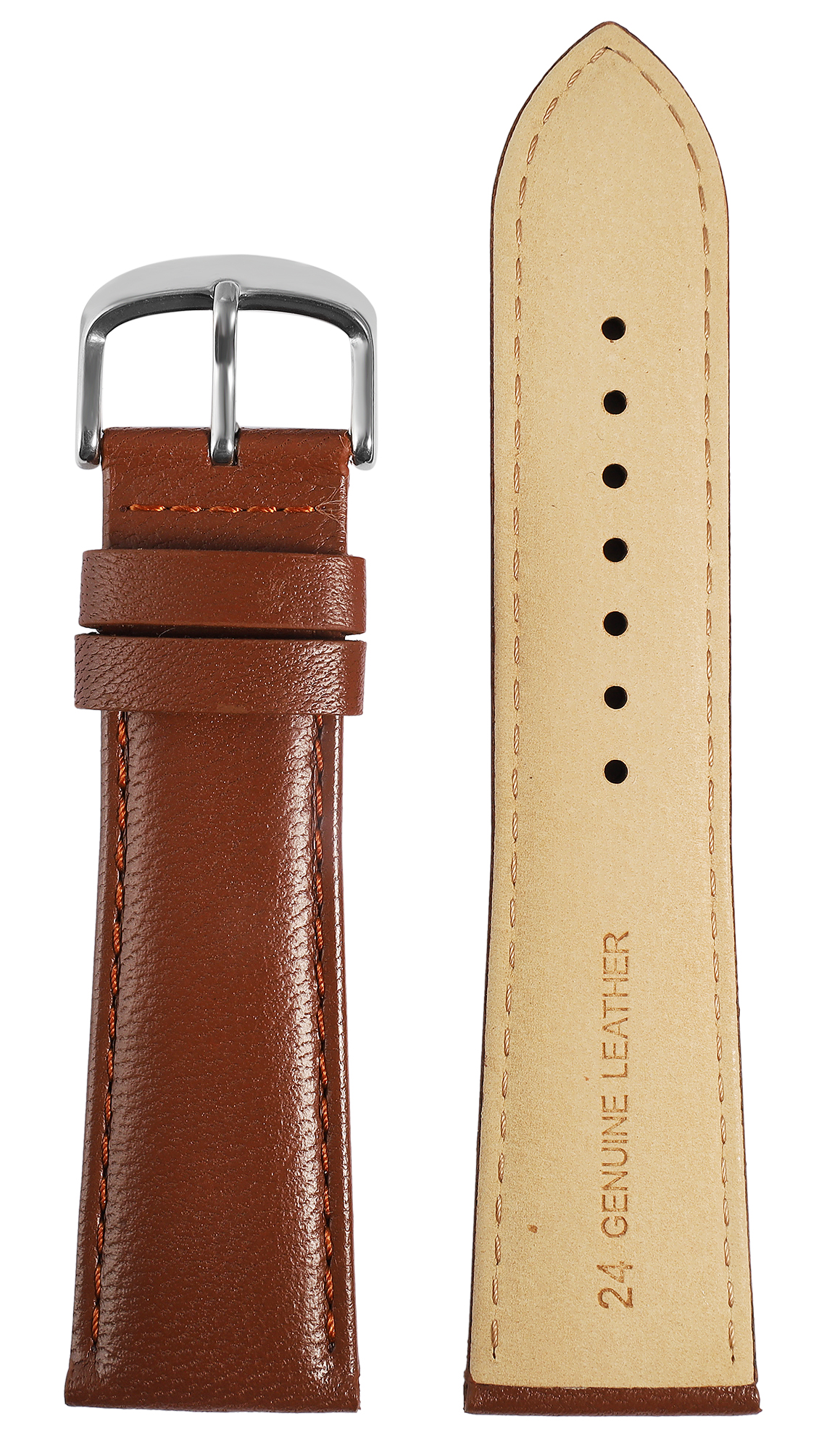 Deze horlogeband van echt leer van hoge kwaliteit in bruin is verkrijgbaar met een breedte van 12 mm, 14 mm, 16 mm, 18 mm, 20 mm, 22 mm en 24 mm. Het biedt dus een geschikte optie voor verschillende horlogemodellen.