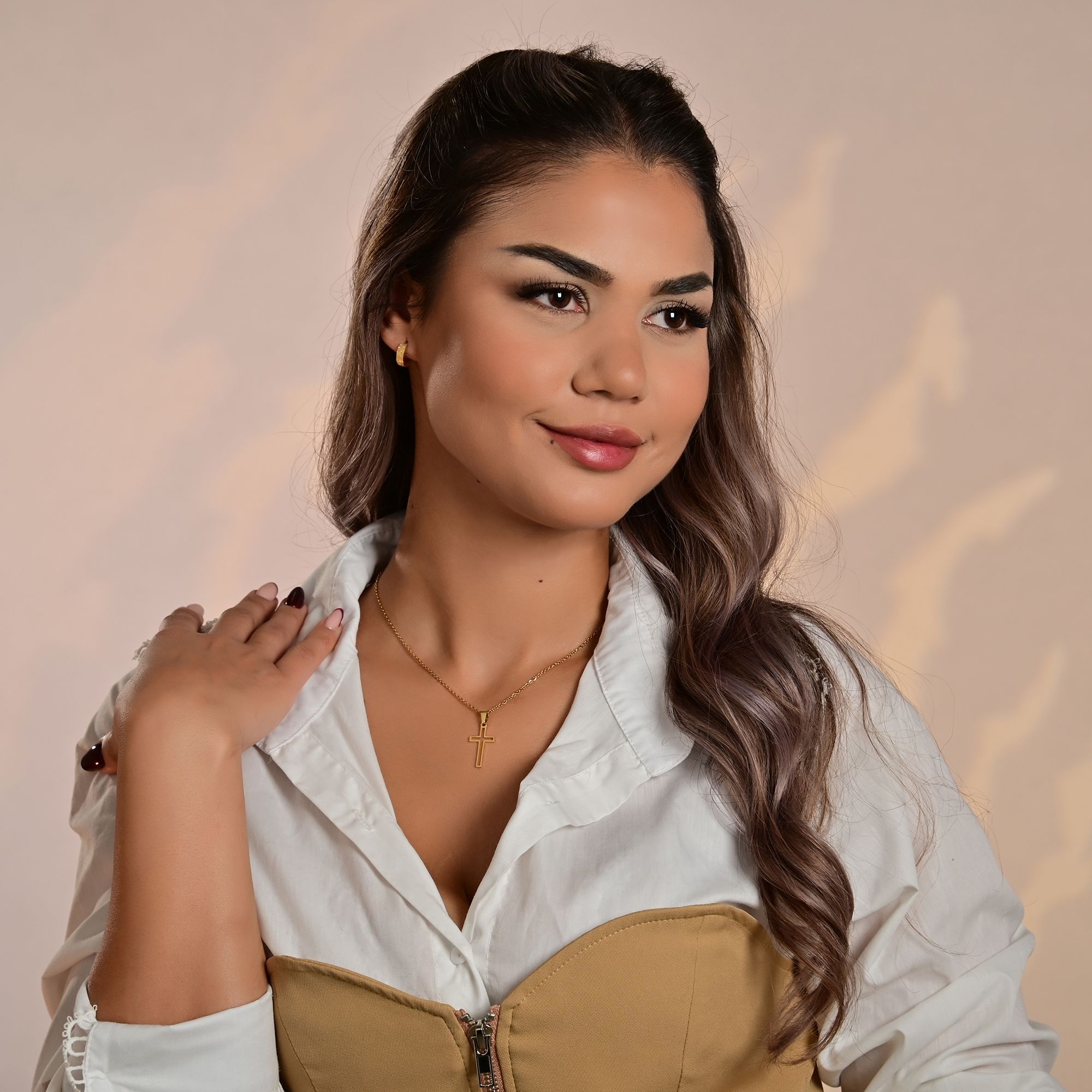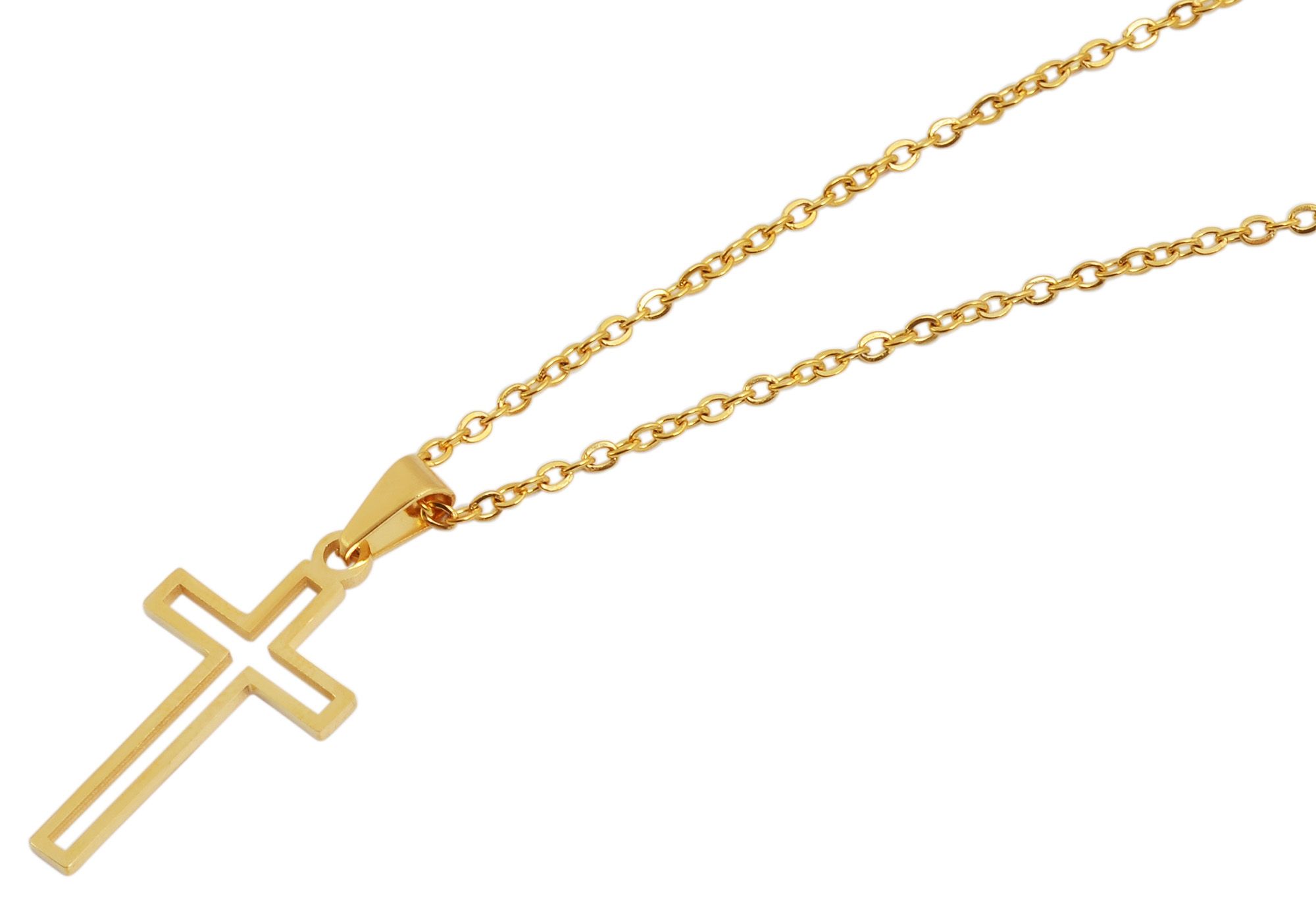 Productinformatie ""Hafsa", Edelstahl Ankerkette, Anhänger - Kreuz, 43+5 cm, goldfarben"