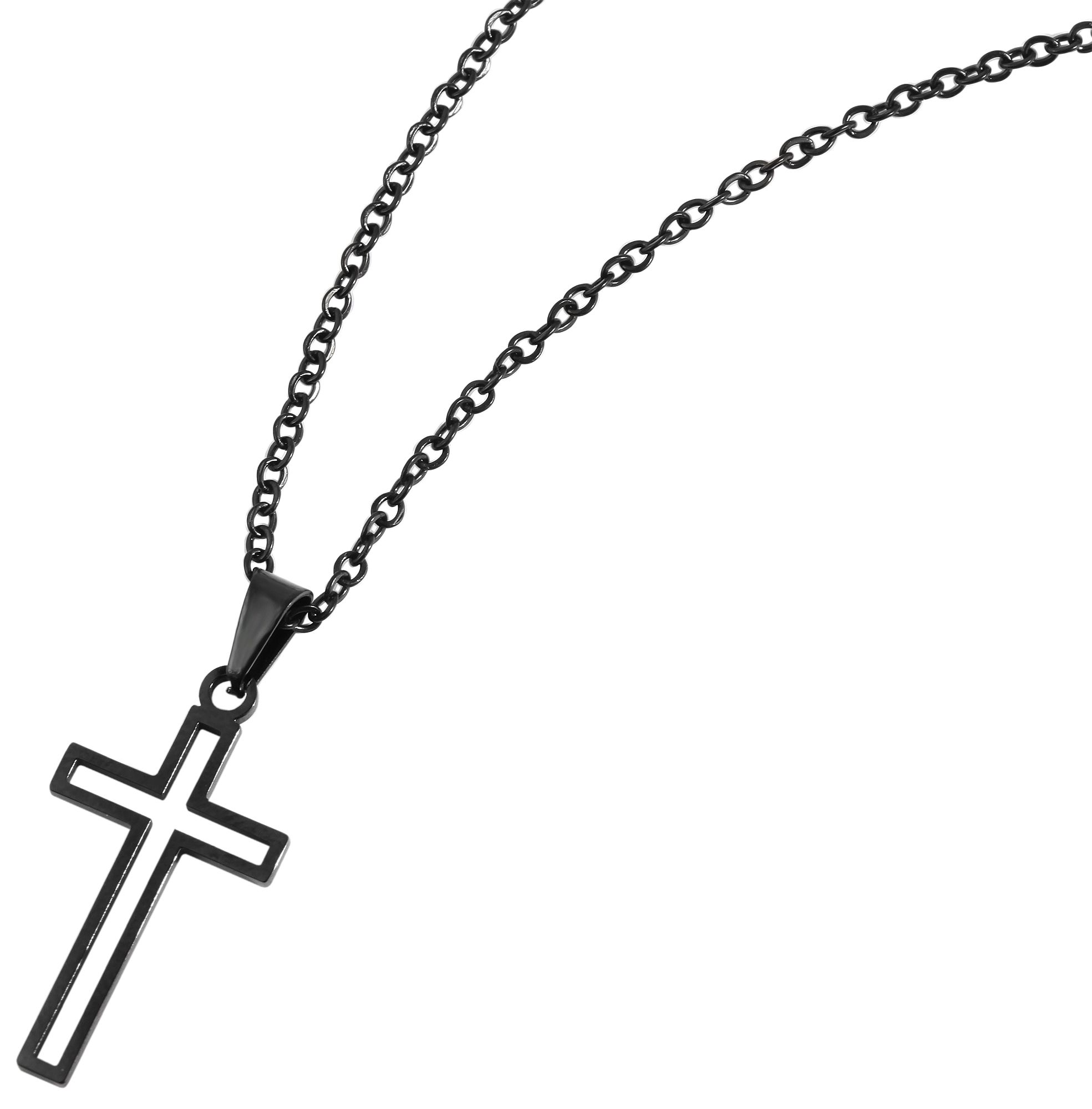 Productinformatie ""Hafsa", Edelstahl Ankerkette, Anhänger - Kreuz, 43+5 cm, schwarz"