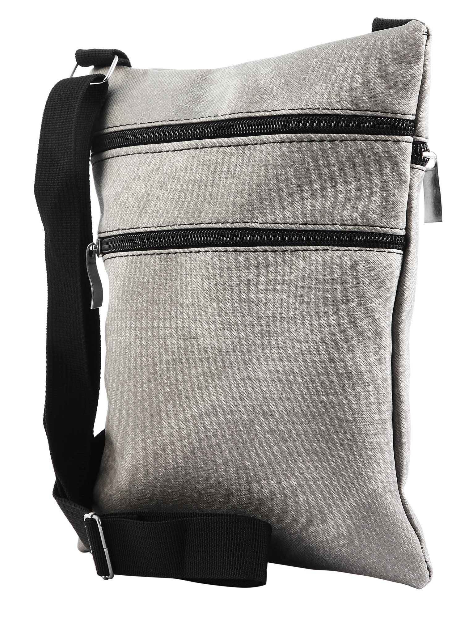 De moderne crossbodytas is gemaakt van robuust kunstleer en heeft een licht gestructureerd oppervlak. Hij heeft ook een lang draaghengsel dat kan worden uitgeschoven tot een maximale lengte van ca. 150 cm. De twee buitenvakken en het vak aan de achterkant zijn toegankelijk met een rits. Deze stijlvolle tas is een modieuze allrounder die voor veel gelegenheden gedragen kan worden. Bovendien is niet alleen het ontwerp indrukwekkend, maar ook de mogelijkheid om al je belangrijke spullen in op te bergen. Of het nu gaat om een rustige wandeling, winkelen of een uitstapje - deze handtas is de ideale metgezel gemaakt van robuuste materialen. De ongevulde tas is 24,5 cm lang, 20 cm breed en 2 cm dik.
