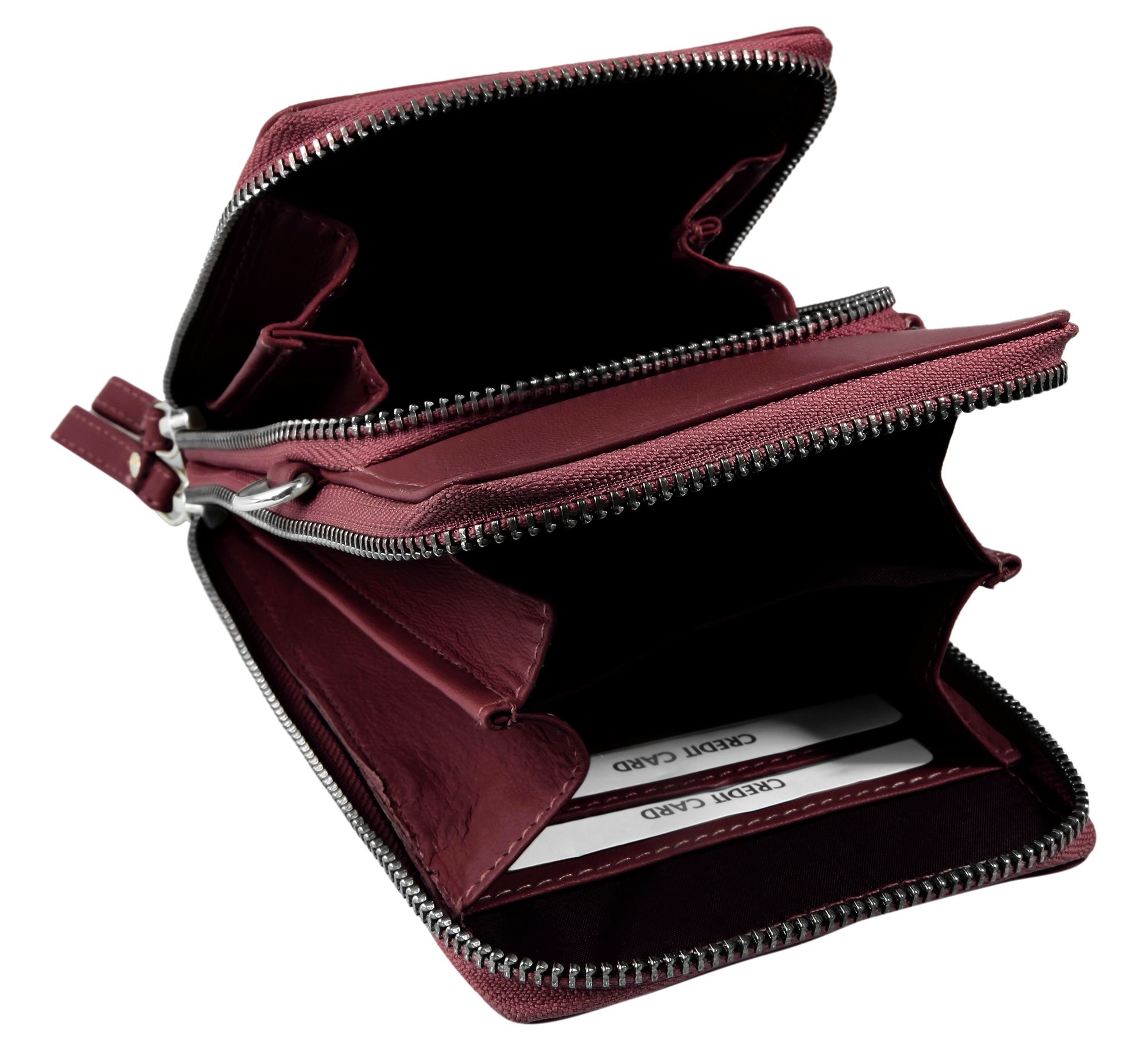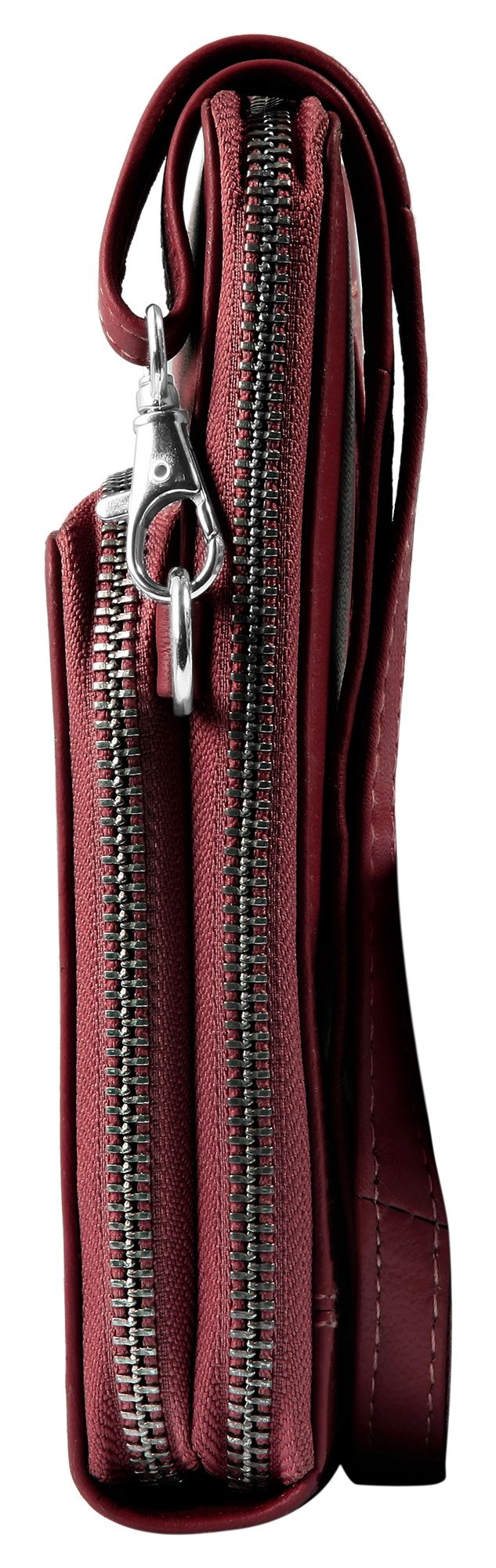 Productinformatie "Handyumhängetasche Echtleder mit Minigeldbörse, geeignet für iPhone 15, bordeaux"