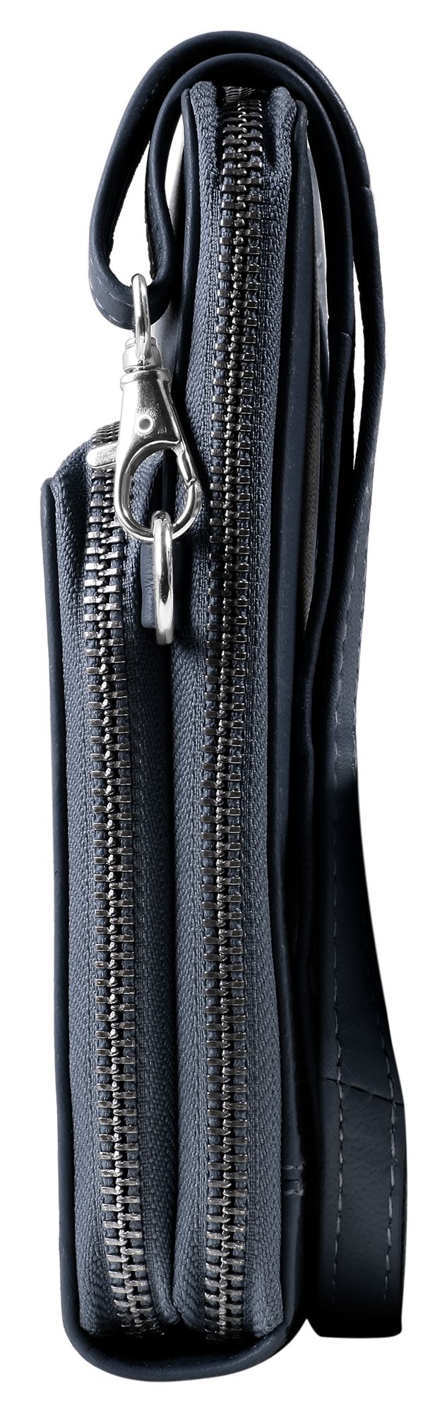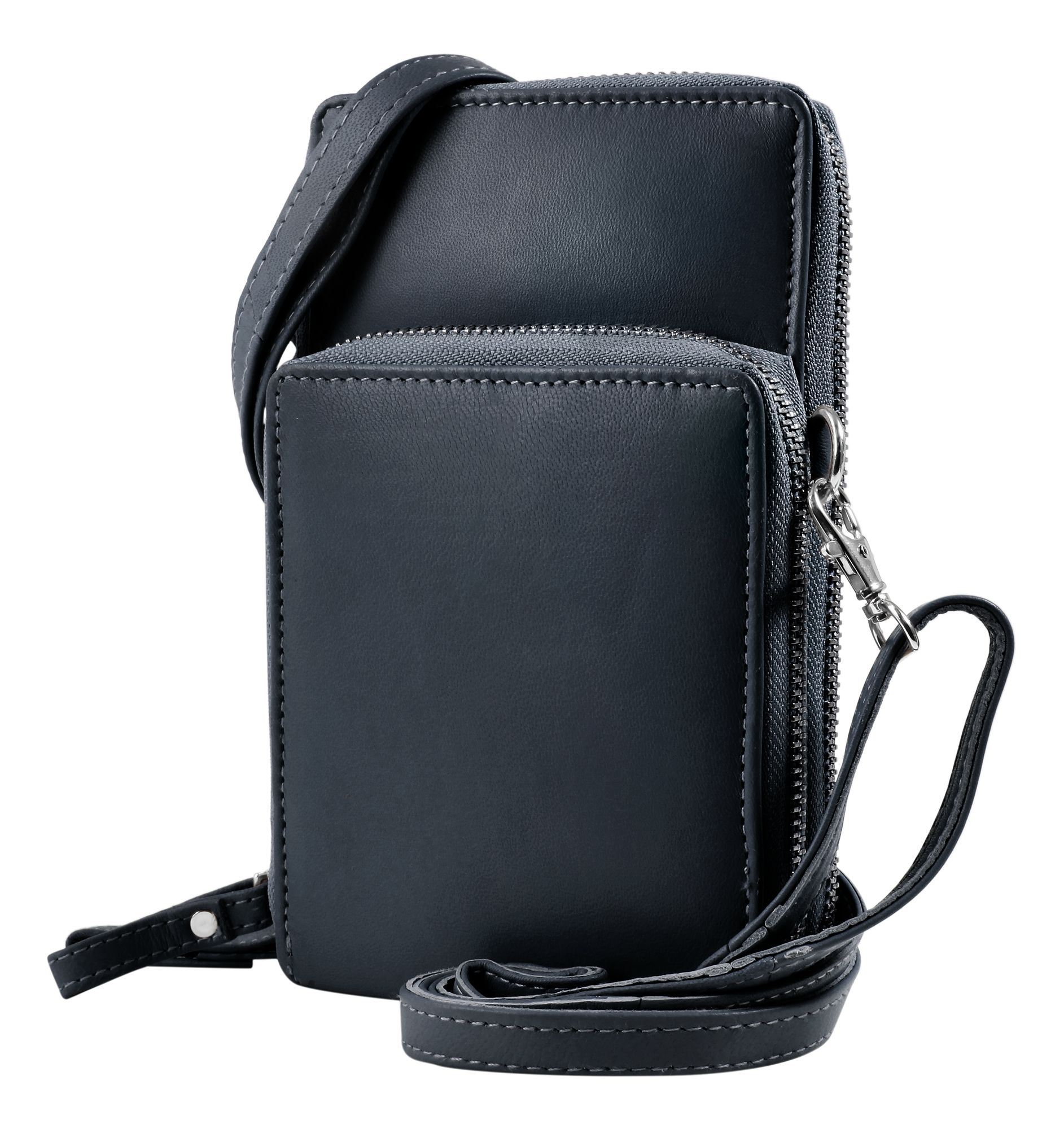 Productinformatie "Handyumhängetasche Echtleder mit Minigeldbörse, geeignet für iPhone 15, dunkelblau"
