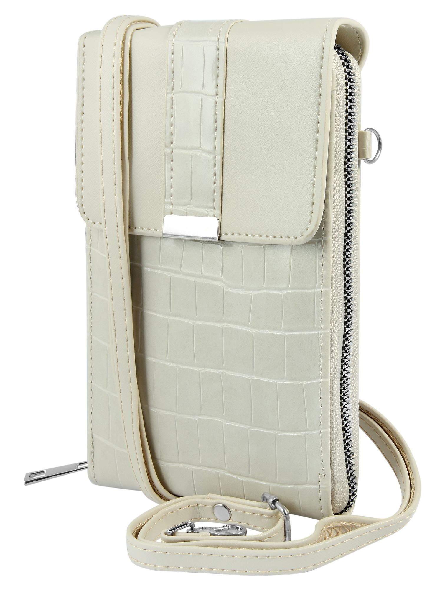 Productinformatie "Schoudertas voor mobiele telefoon van imitatieleer, geschikt voor iPhone 15, beige"