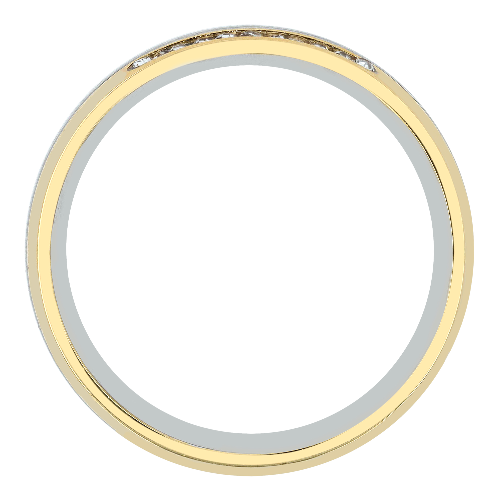 De ring maakt indruk met zijn elegante tweekleurige tweekleurige ontwerp. Het hoofdoppervlak is mat geborsteld en afgewerkt in elegant zilver - dit creëert een moderne, ingetogen look. Een smalle, gepolijste rand in warm goud zorgt voor een luxueus contrast. Het bijzondere aan de damesring is de fonkelende rij kleine steentjes, die vakkundig in het oppervlak zijn gezet en een discrete maar stralende blikvanger vormen.