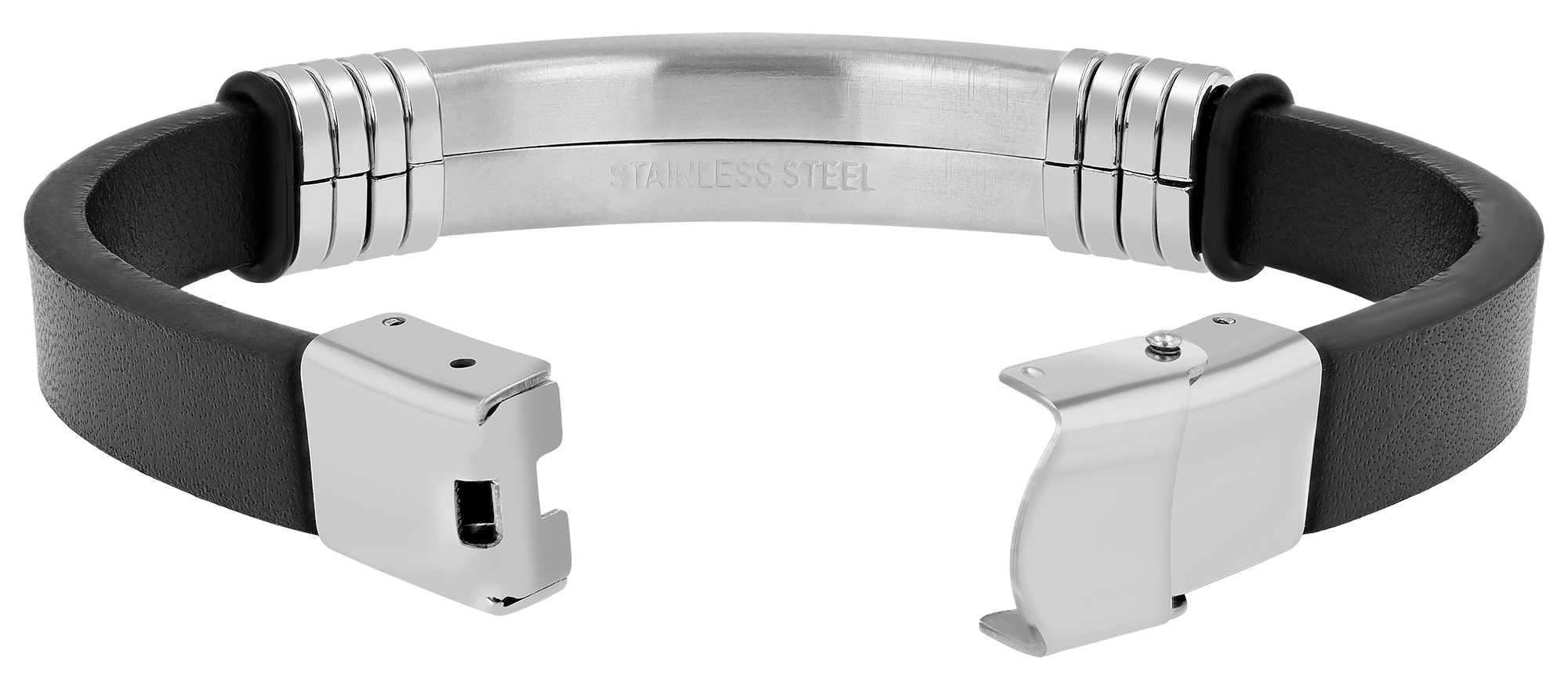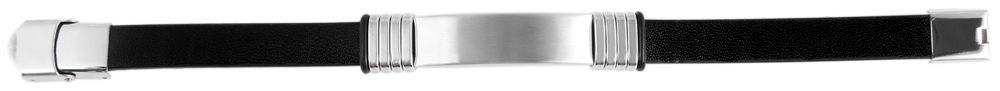 Productinformatie ""Henrique" Echtlederarmband mit Gravurplatte, 21 cm, schwarz/ silberfarben"
