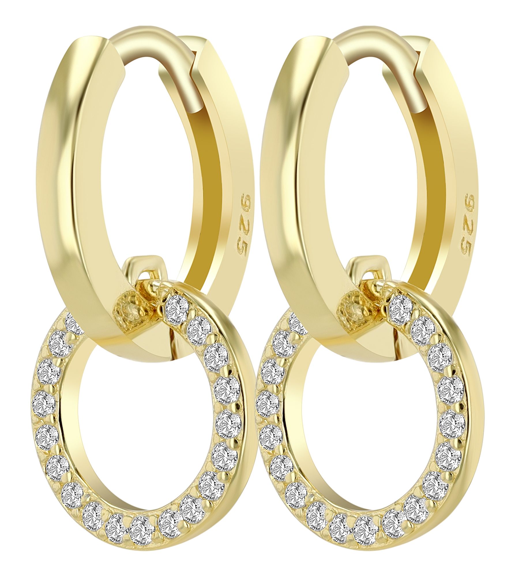 Productinformatie ""Holly" 925/- echt zilveren scharnierende hoepel oorbellen met hanger, zirkoon, verguld"