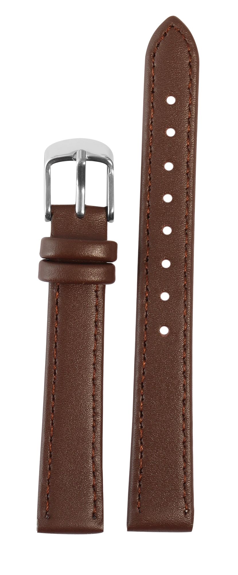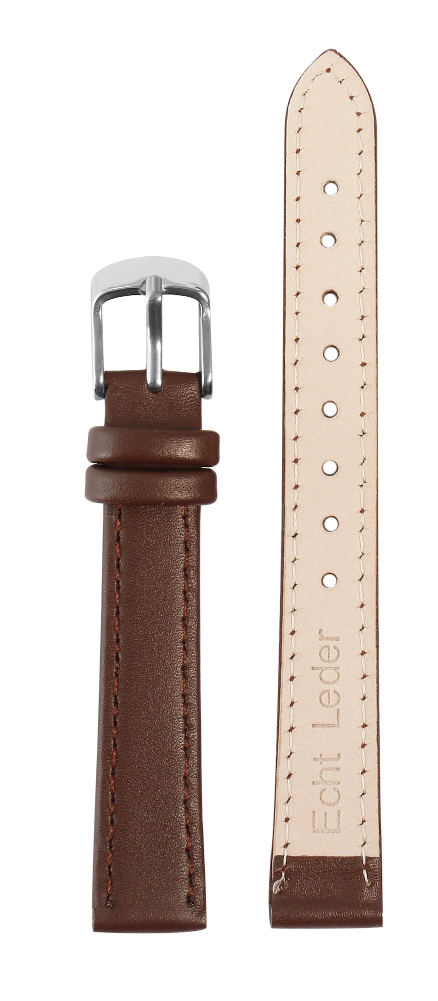 Productinformatie "Horlogebandje van echt leer, gestikt, donkerbruin, 12 mm"