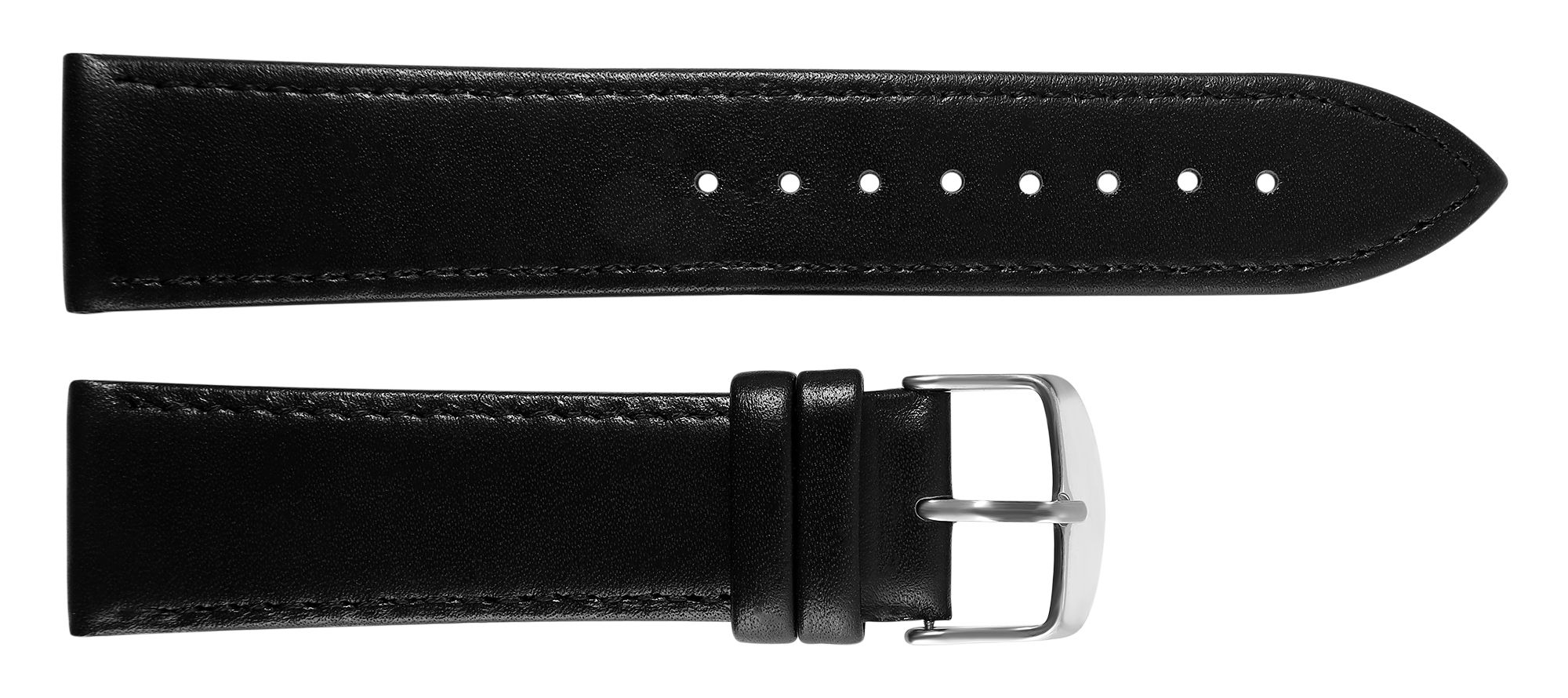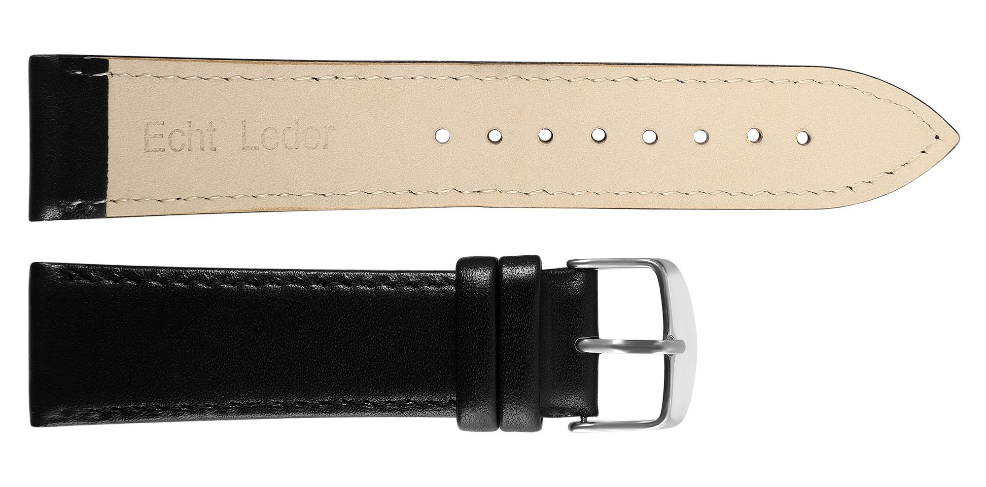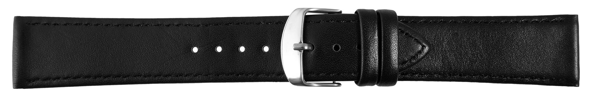 Productinformatie "Horlogebandje van echt leer, gestikt, zwart, 20 mm"