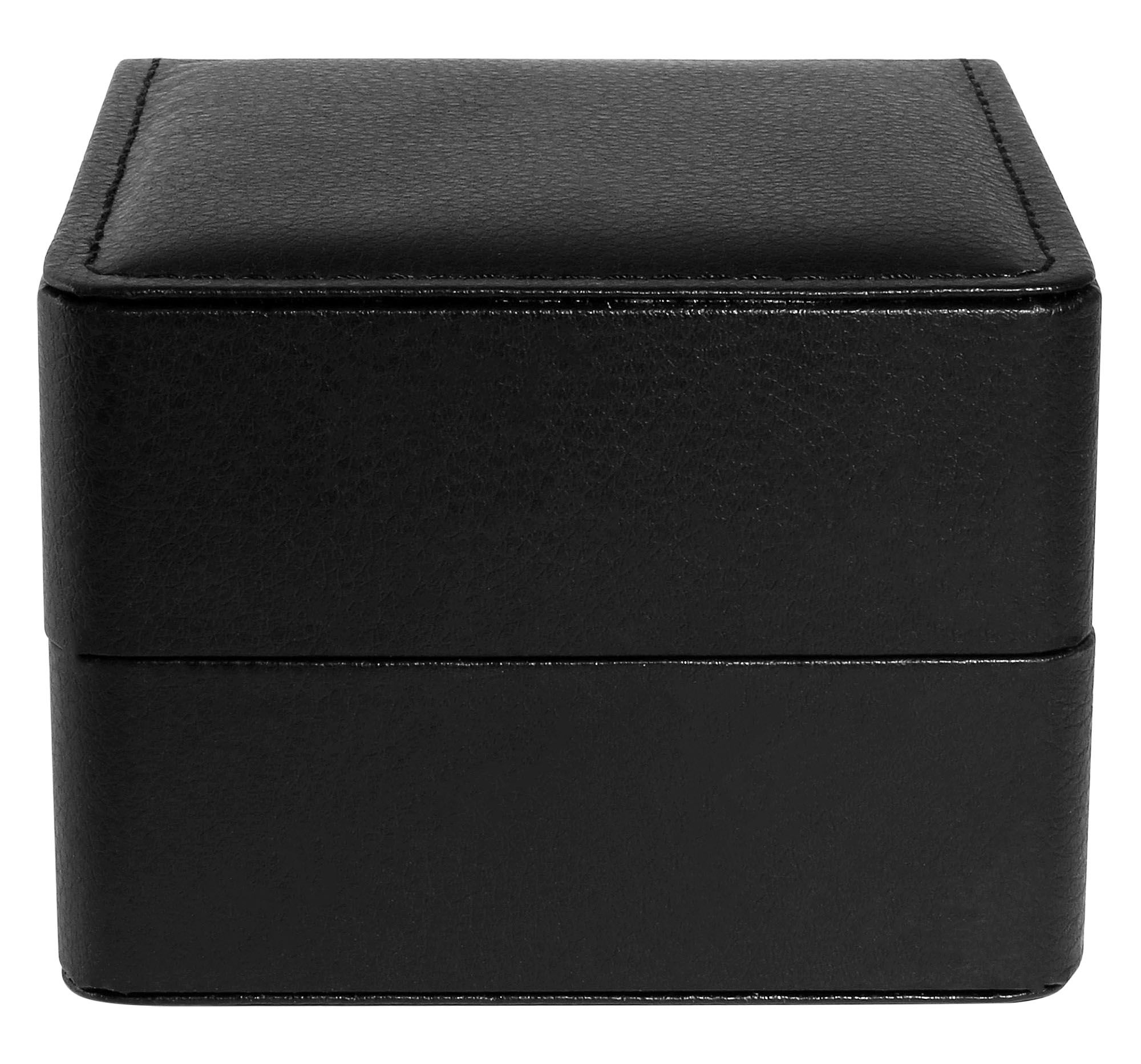 Productinformatie "Horlogebox met scharnier met kussen, imitatieleer, 11 x 10 x 7 cm, zwart"