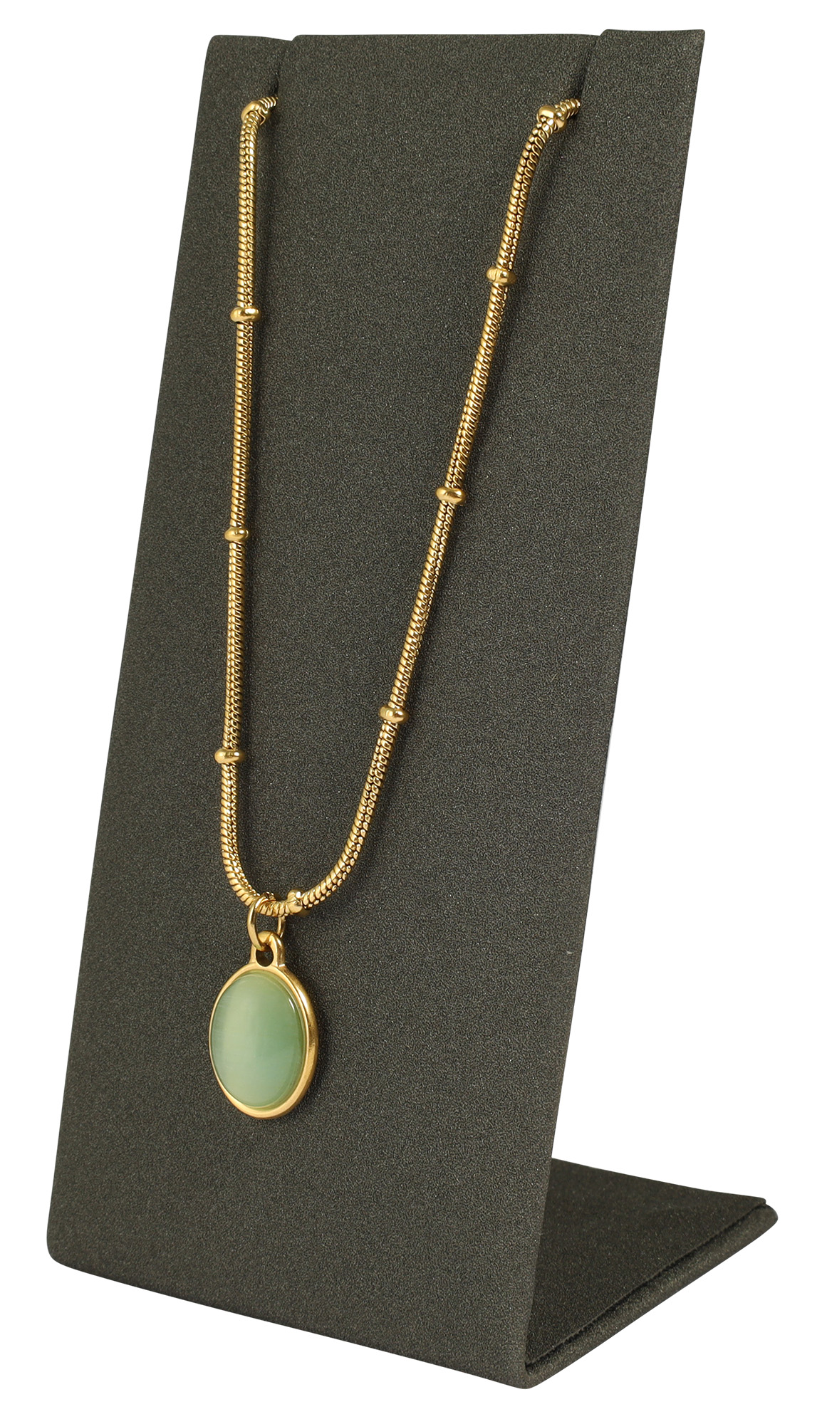 Deze displaystandaard is perfect om een halsketting met hanger in stijl te presenteren. Met zijn afmetingen van slechts 10 x 4,5 x 4 cm is hij ideaal om uw sieraad vakkundig te presenteren.
