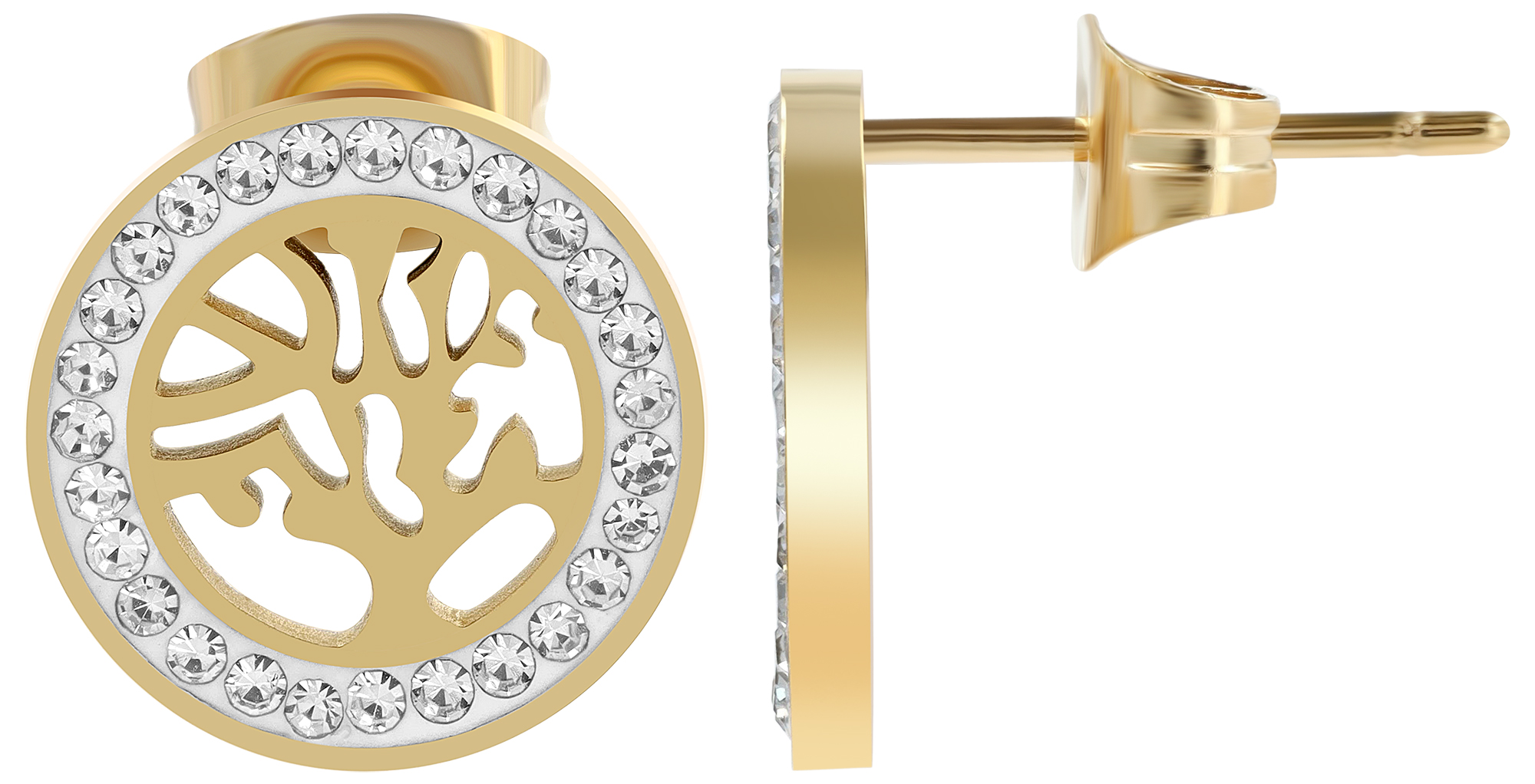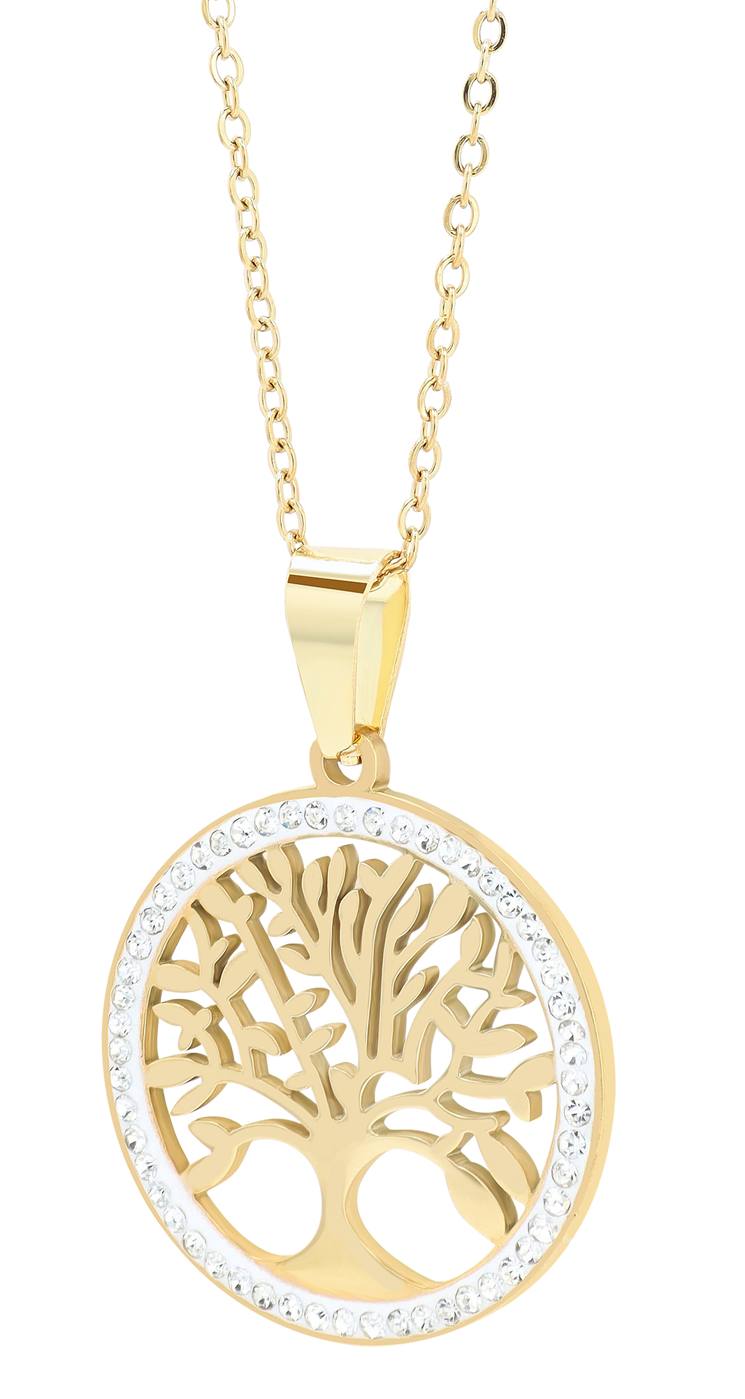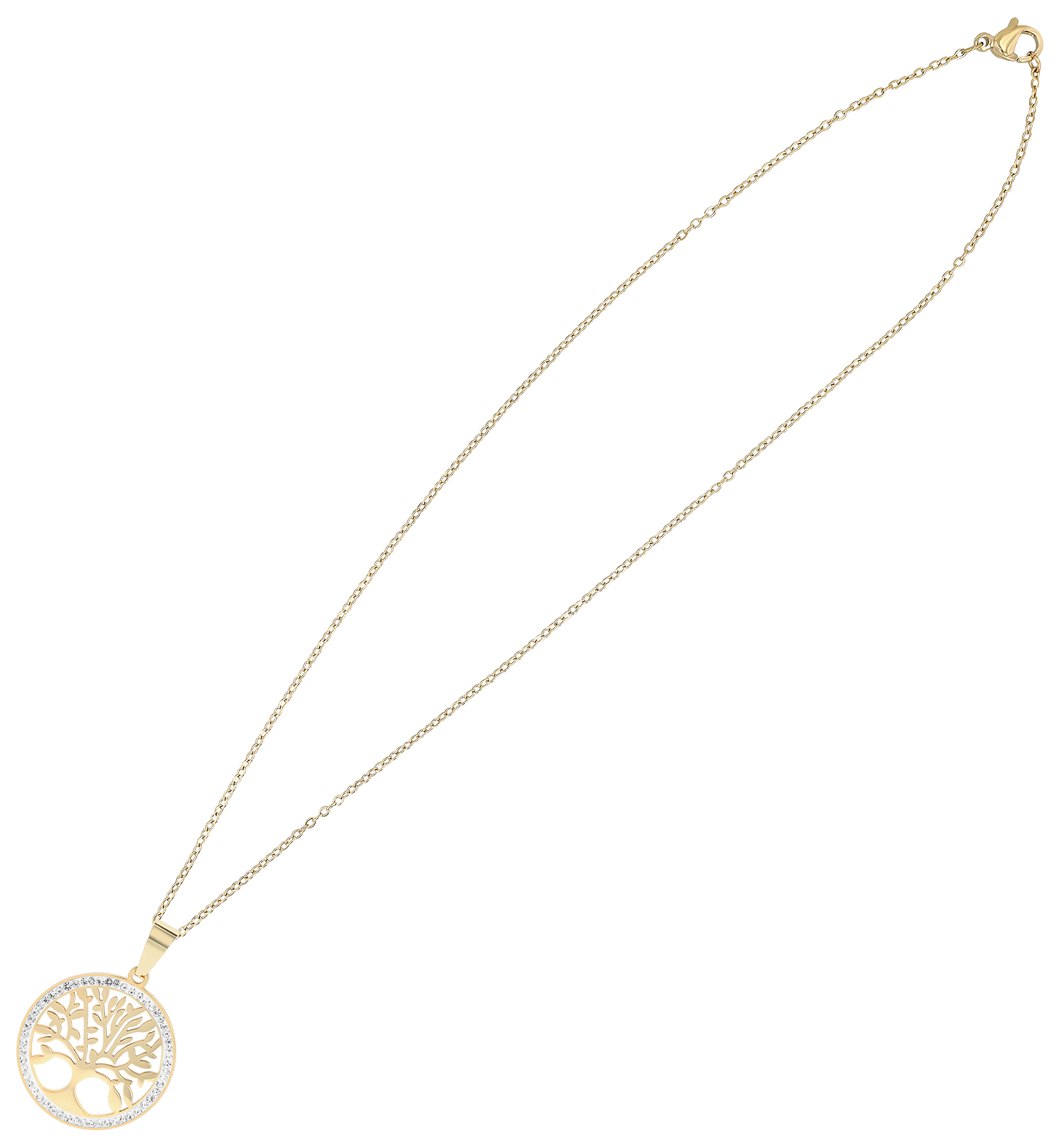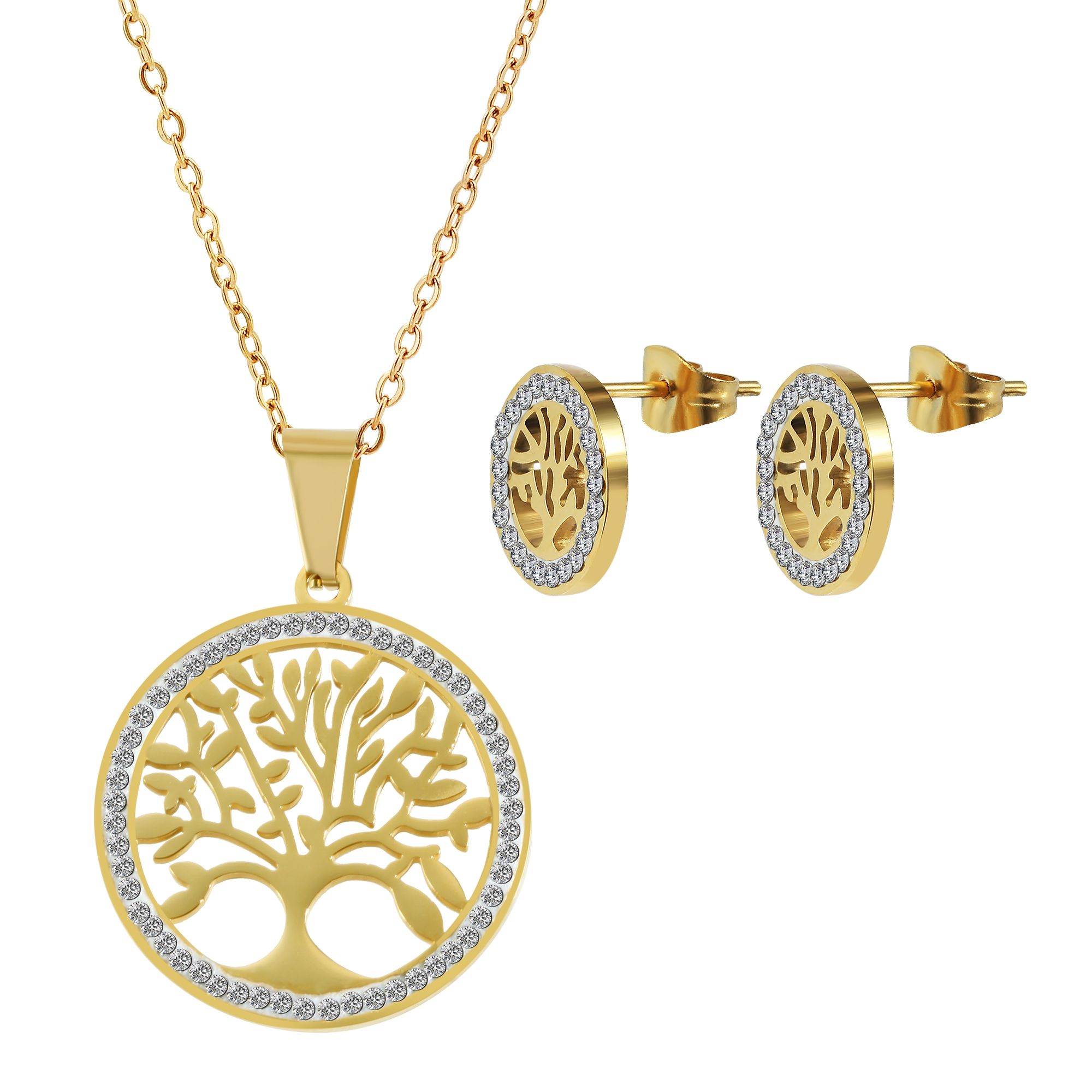 Productinformatie ""Inna" Schmuckset (Kette 45 cm & Ohrringen), Edelstahl, Lebensbaum, goldfarben"