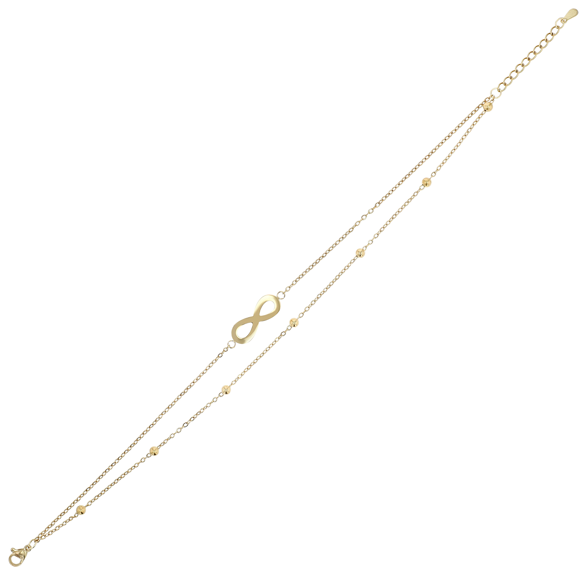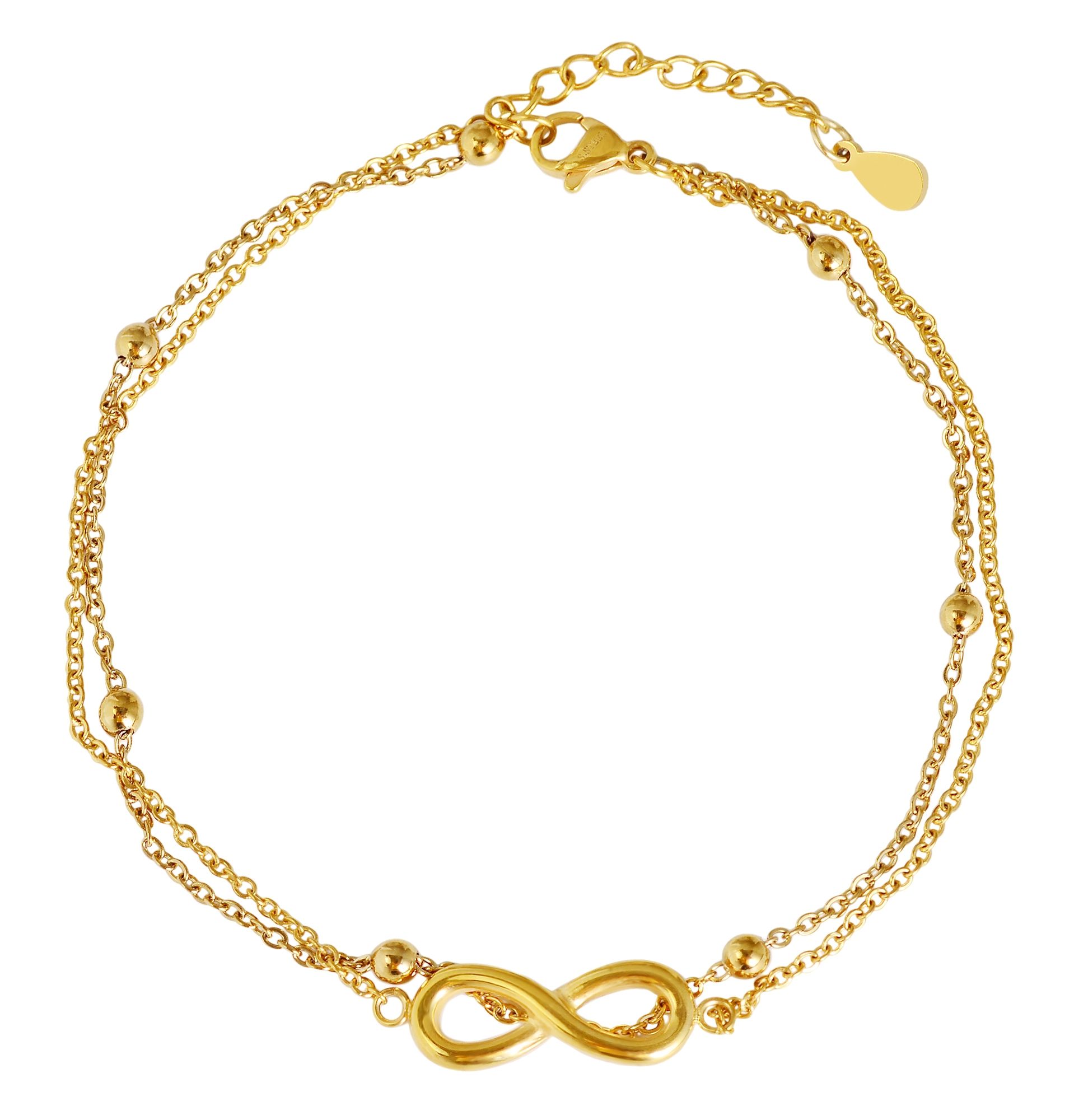 Productinformatie ""Irena" Edelstahl Fußkette, 2-reihig, Infinity, 24 + 3 cm, goldfarben"