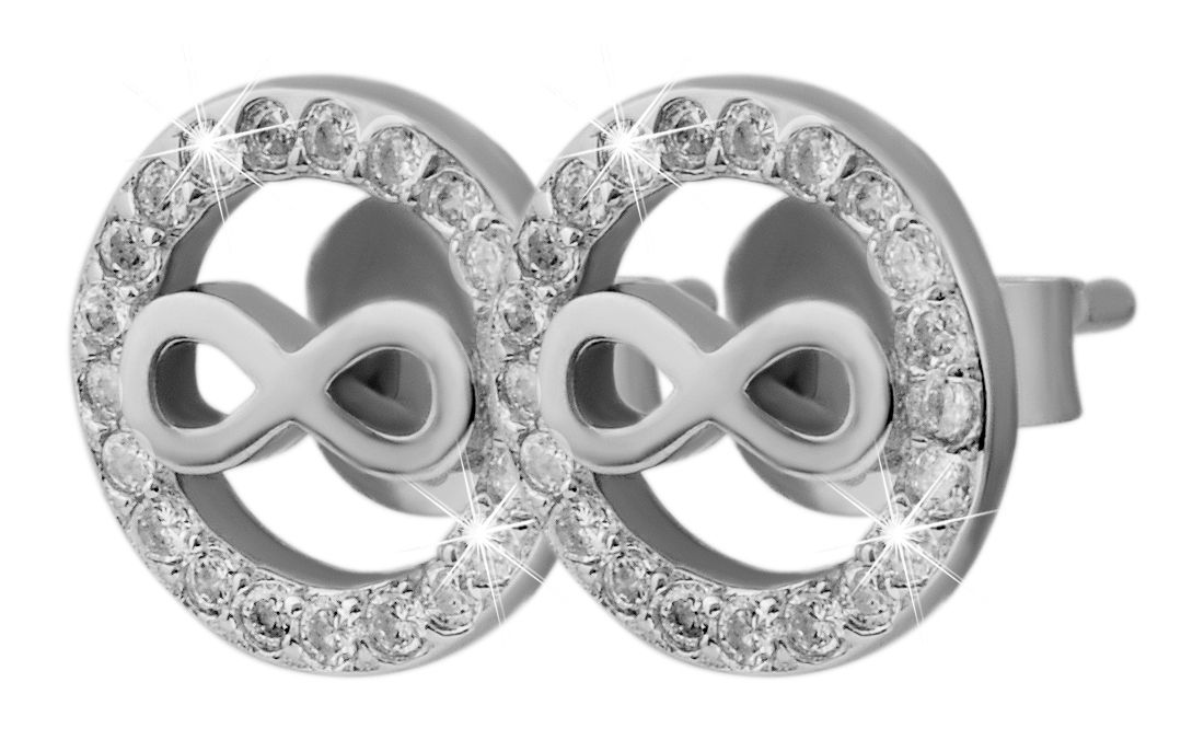 De sieradenset, bestaande uit oorstekers en een bijpassende hanger met een oneindigheidssymbool, is gemaakt van 925 sterling zilver en is bovendien gerhodineerd. Deze hoogwaardige coating beschermt de sieraden tegen aantasting en zorgt voor een heldere, stralende glans. De ronde Infinity oorstekers zijn rondom bezet met 21 zirkonia steentjes. Ze hebben een diameter van 9 mm en een dikte van 2 mm. De oorbellen kunnen met een vleugelschroef aan het oorgat worden bevestigd. De bijpassende hanger kan prachtig gecombineerd worden met de oorbellen. De hanger is ook versierd met 26 zirkonia steentjes. De grootte komt voort uit een diameter van 11 mm en een dikte van 2 mm. De sieradenset is een geweldige allround blikvanger en is ook ideaal als cadeau. Houd er bij de aankoop van dit product rekening mee dat de hanger ZONDER ketting wordt geleverd.