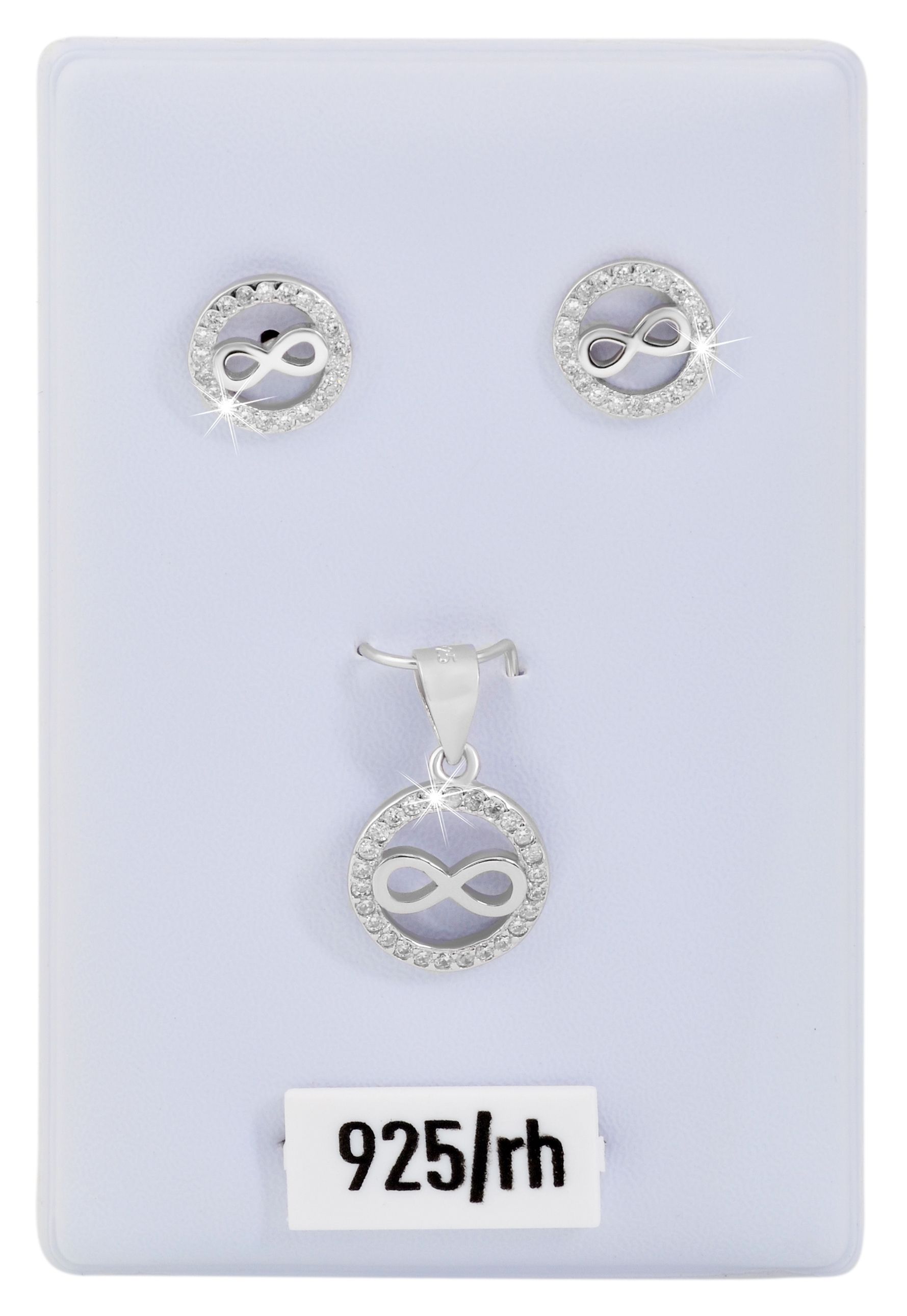 Productinformatie ""Irina" 925/- Echt Silber Schmuckset (Anhänger und Ohrstecker) - Infinity-Symbol, rhodiniert"