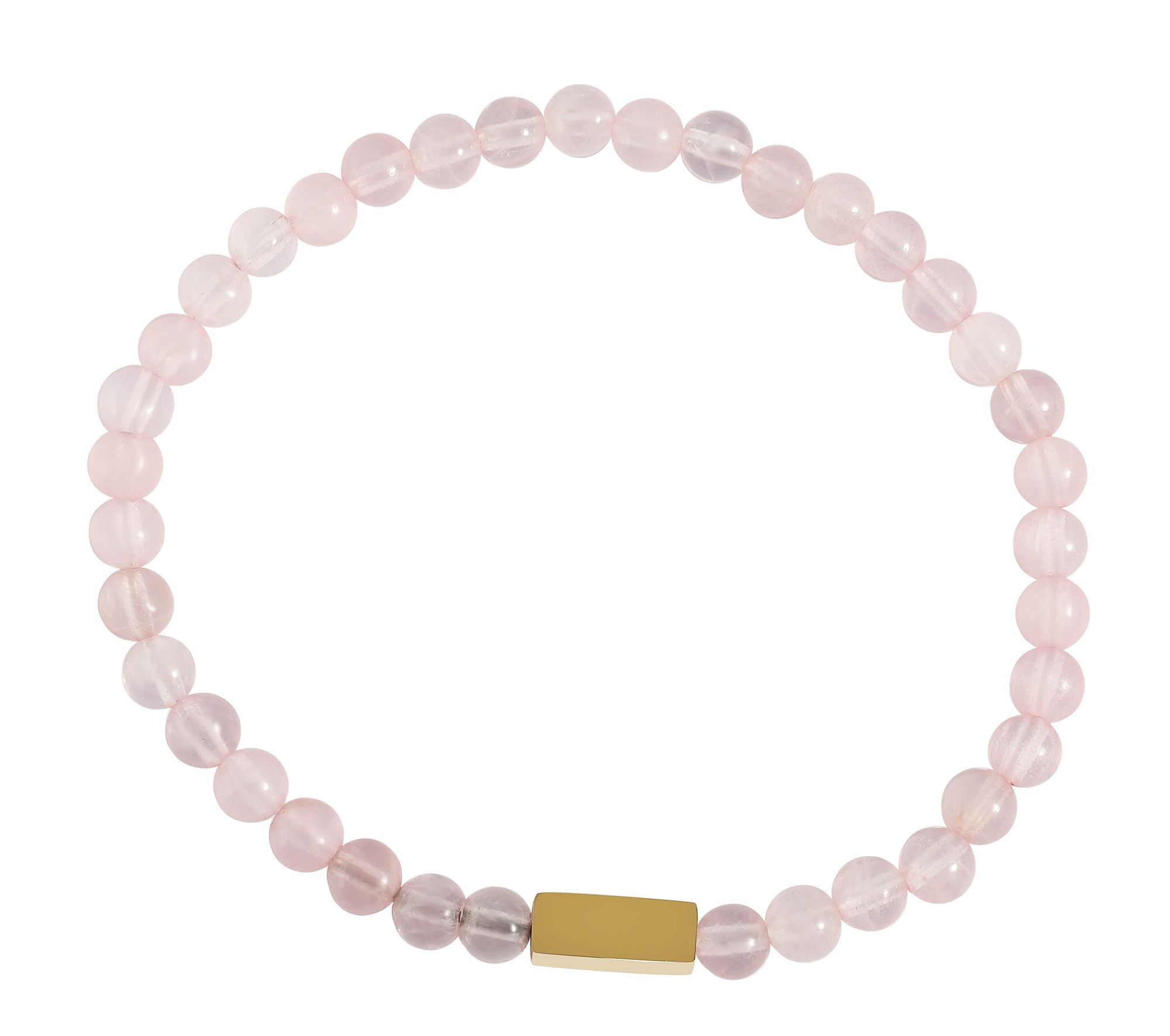 Deze prachtige kralenarmband combineert natuurlijke schoonheid met eigentijds design. Gemaakt van delicate rozenkwartsbolletjes, elk met een diameter van 4,5 mm, straalt de armband de natuurlijke schoonheid van een uniek stuk uit. De harmonieuze kleur van de rozenkwarts wordt benadrukt door een discreet roestvrijstalen element in een koele zilverkleur of warme goudkleur, dat met een lengte van 10 mm en een breedte van 4 mm elegant in het ontwerp is geïntegreerd.