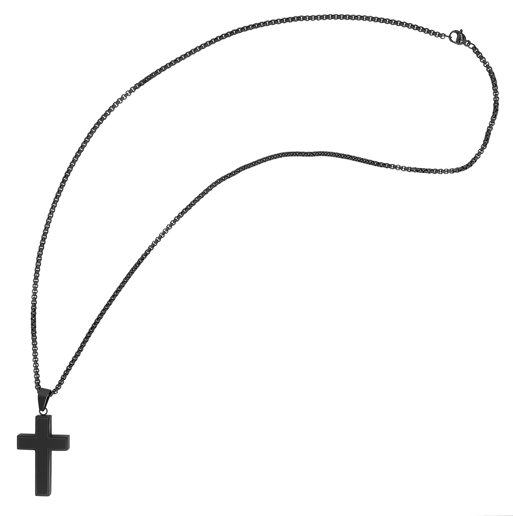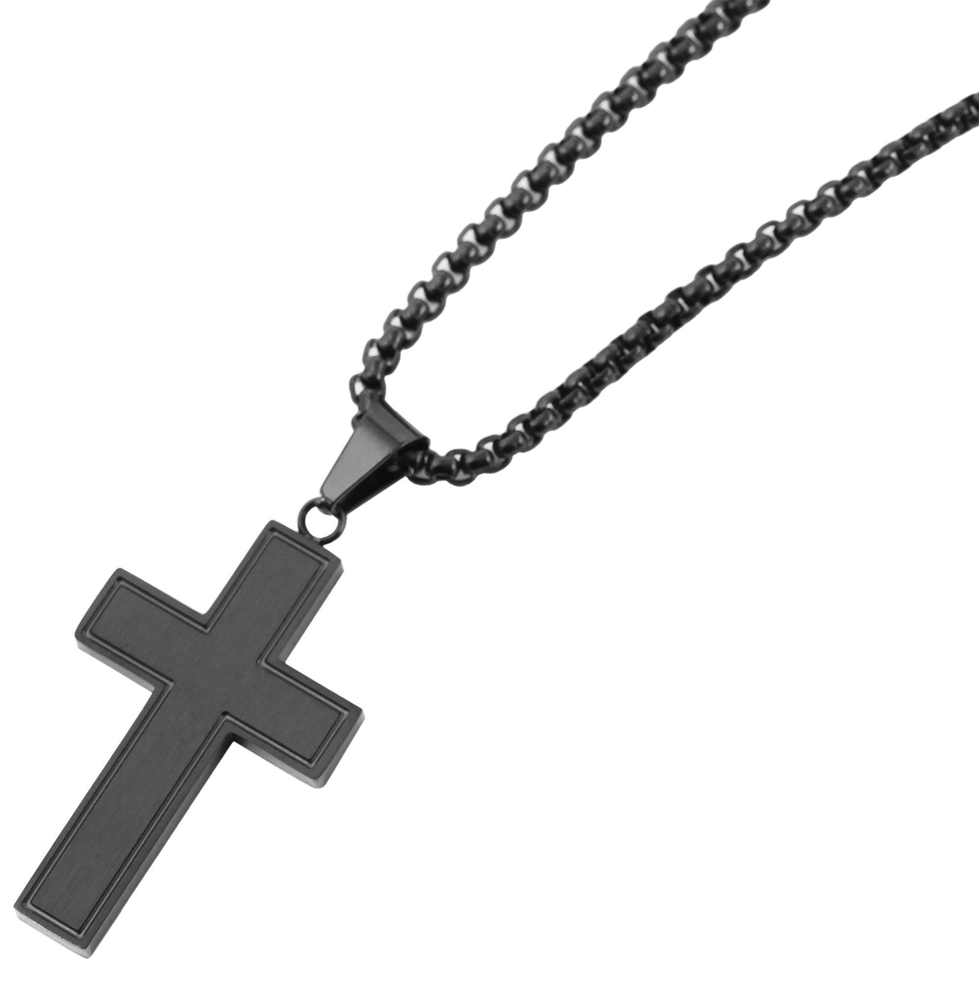 Productinformatie ""Isoke" erwtenketting met hanger, kruis, roestvrij staal, 61 cm, zwart"