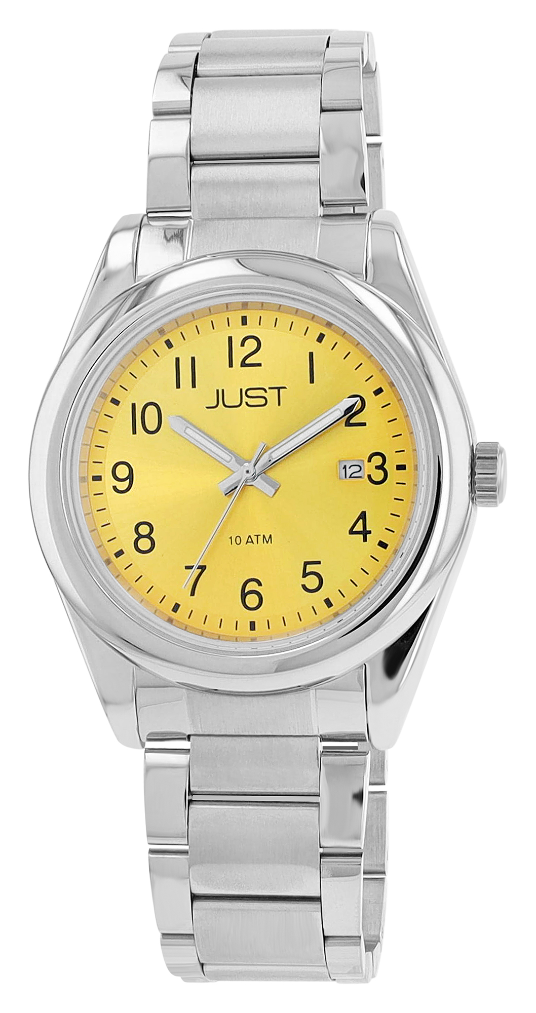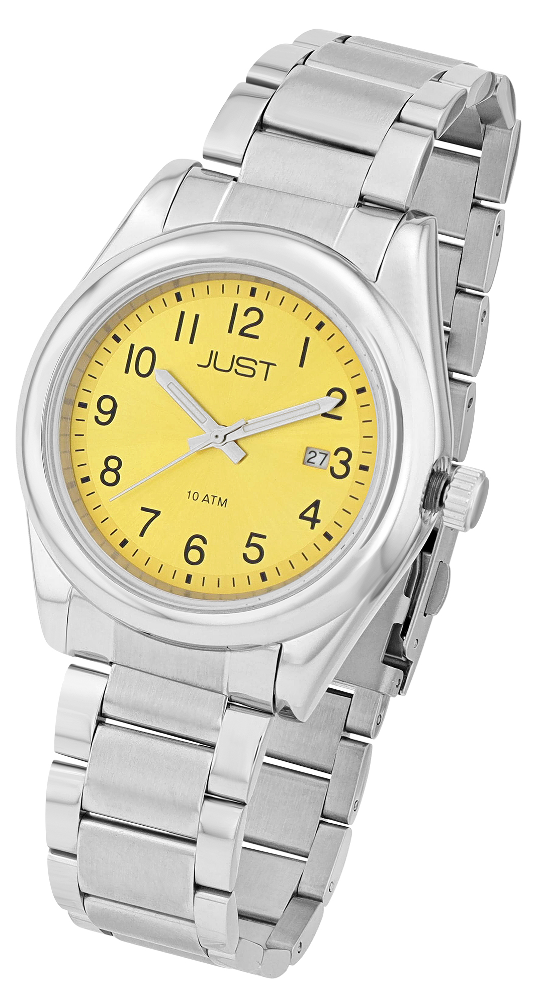 Productinformatie "JUST Herrenuhr "Mailo" mit Edelstahlarmband, Ø 41 mm, 10 ATM, silberfaren/ gelb"