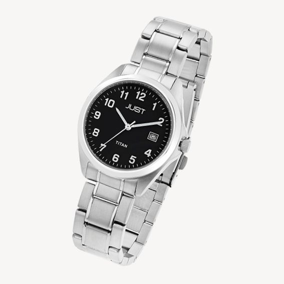 Productinformatie "JUST "Kaius" Herren Titanuhr mit Titanband,10 ATM, schwarzes ZB"