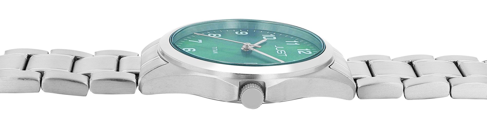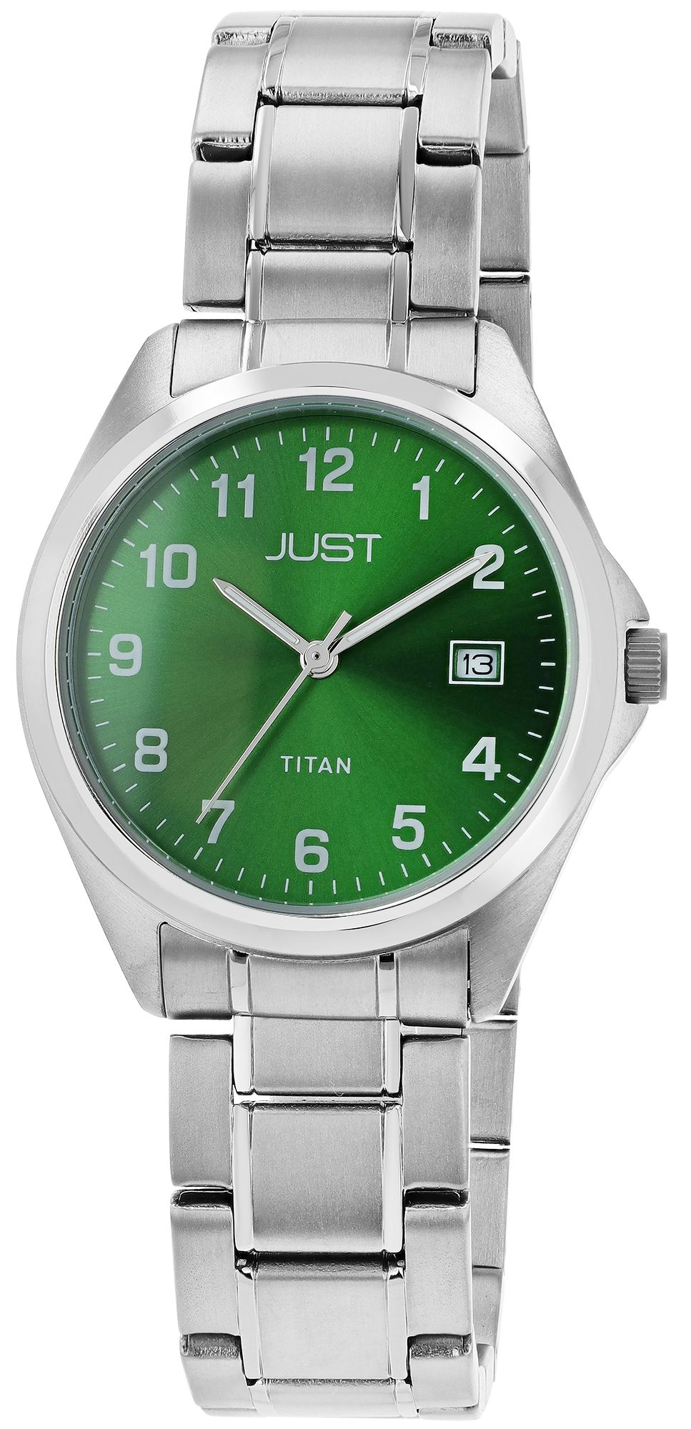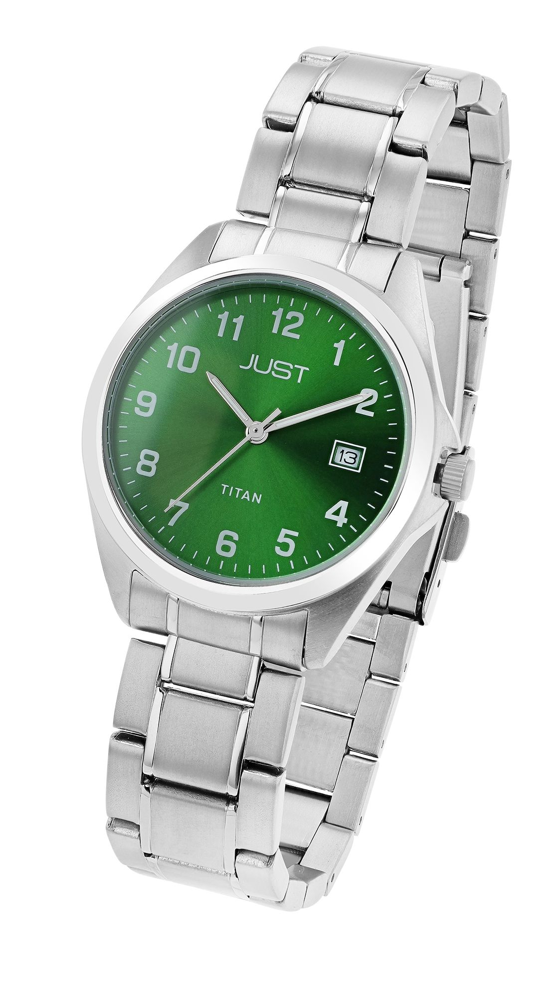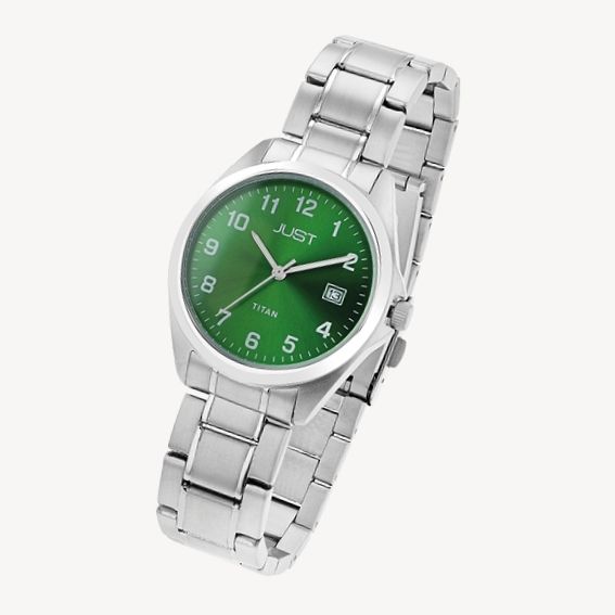 Productinformatie "JUST "Kaius" Herren Titanuhr mit Titanband,10 ATM, grünes ZB"
