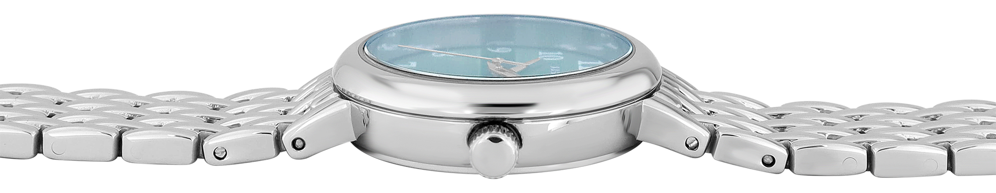 In dit klassieke uurwerk zit een zeer nauwkeurig kwartsuurwerk dat bekend staat om zijn nauwkeurigheid. Het slanke dameshorloge is verkrijgbaar in zilverkleuren met een rode, turquoise, groene of witte wijzerplaat.