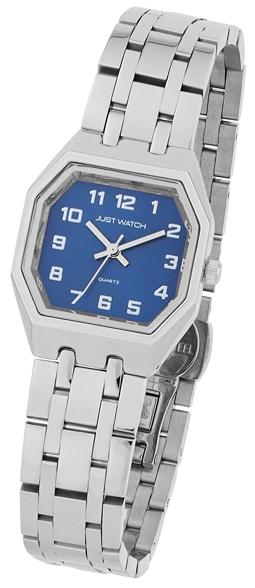 Productinformatie "JUST WATCH Damenuhr "Antagion" mit Edelstahlband, silberfarben/ blau"