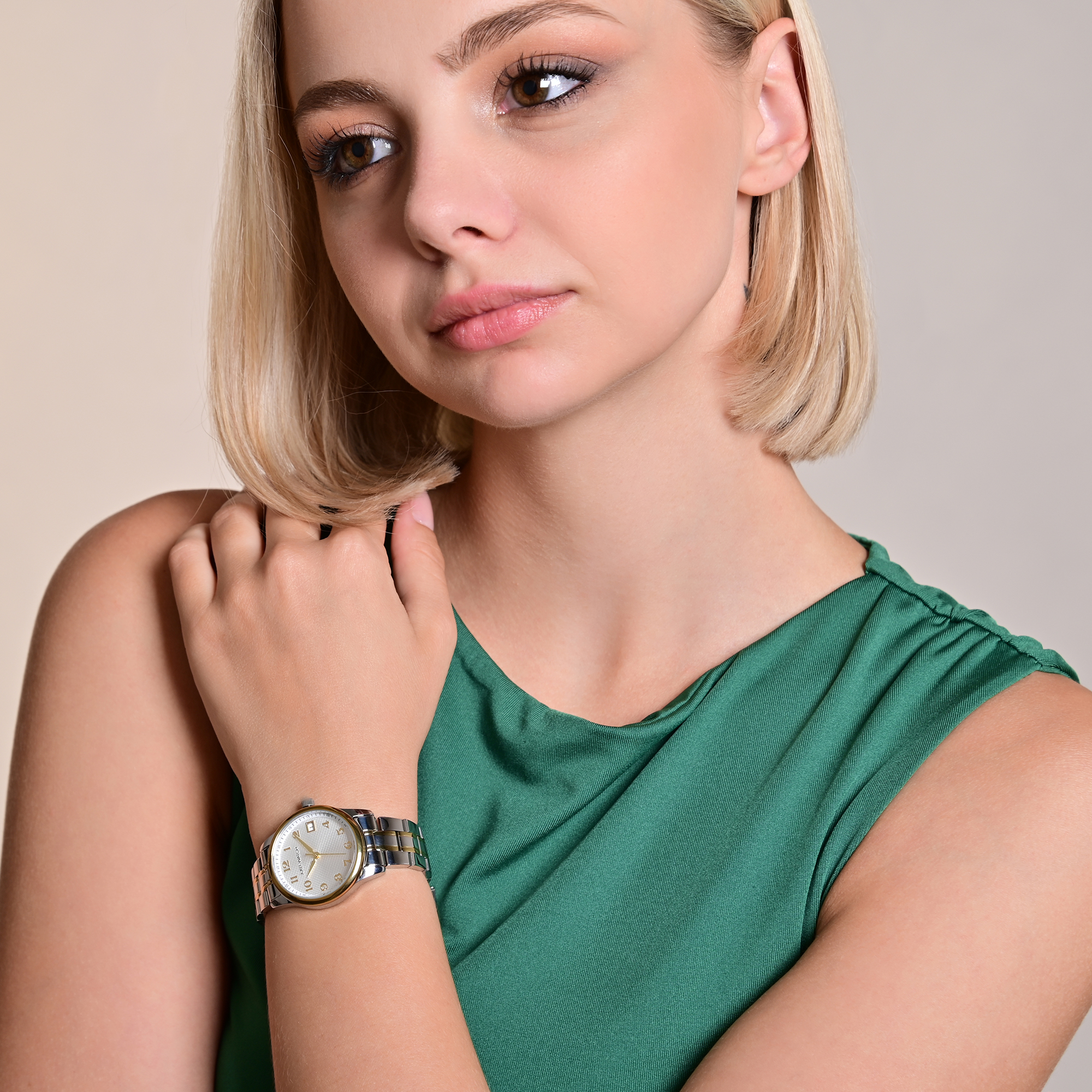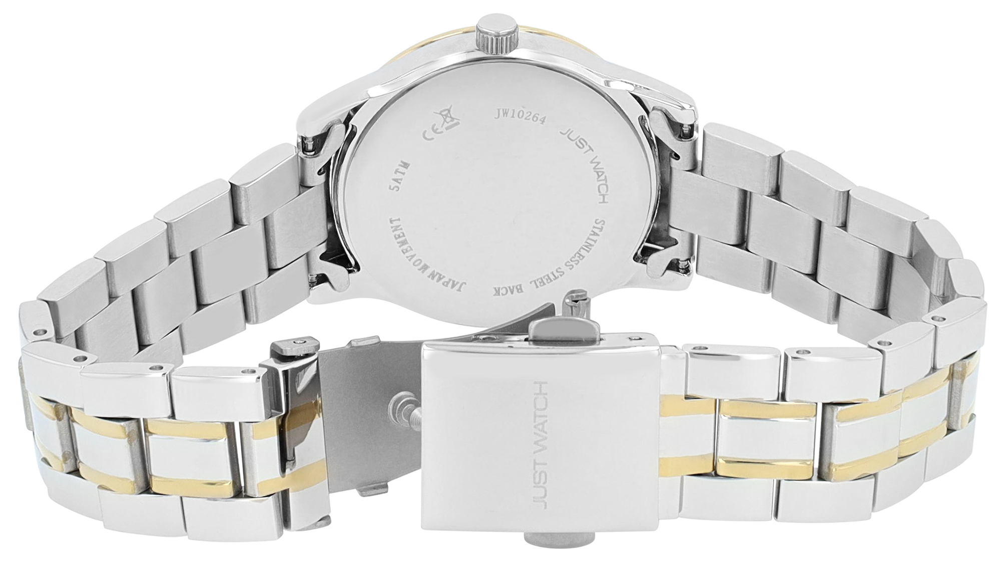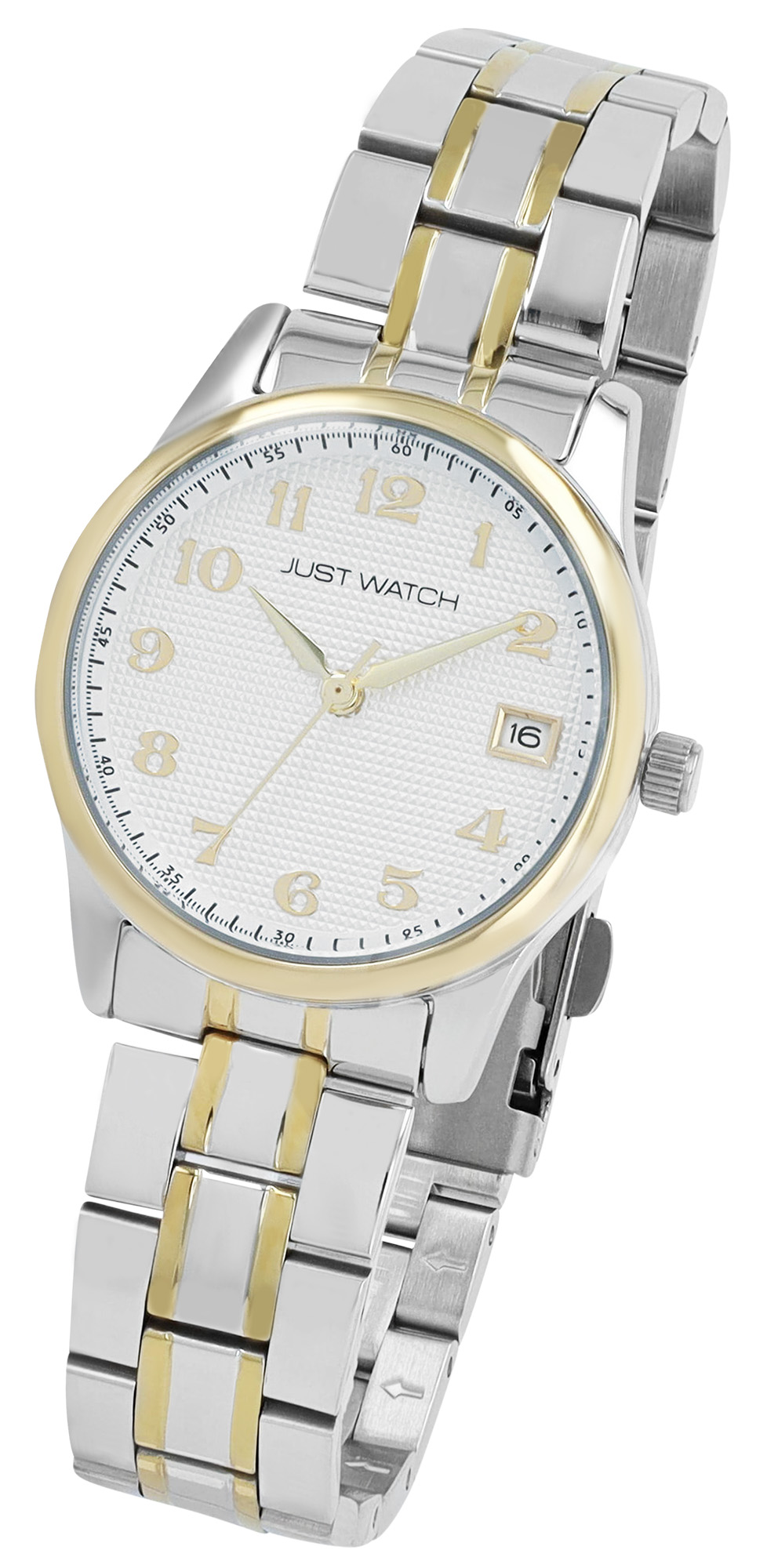 Productinformatie "JUST WATCH Damenuhr "Ava" mit Edelstahlarmband, Ø 31 mm, 5 ATM, bicolor (silberfarben/ goldfarben)/ silberfarben"