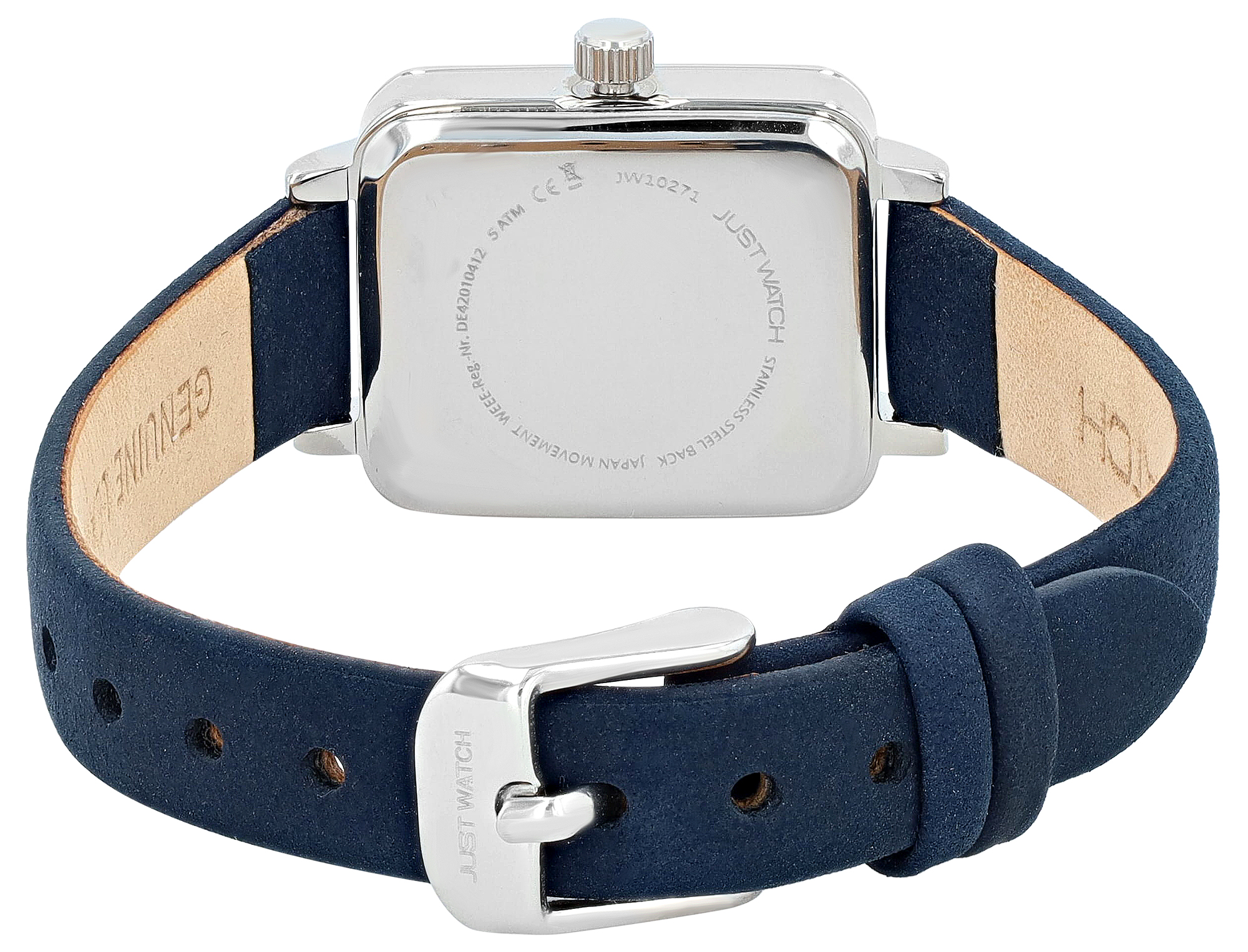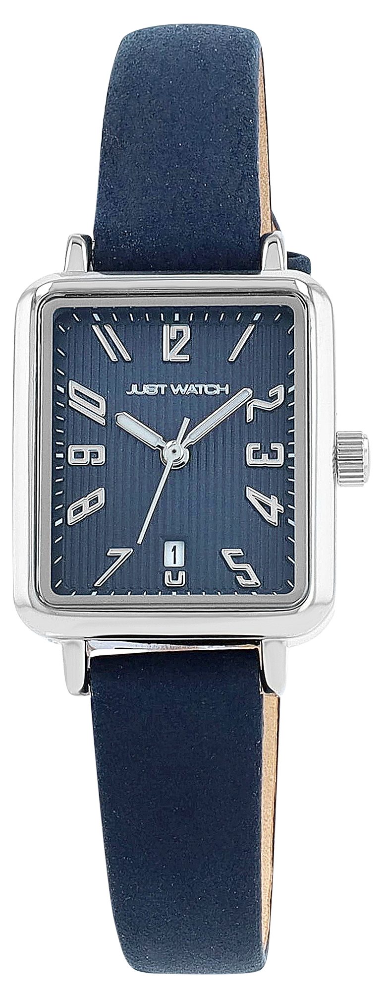 Productinformatie "JUST WATCH Damenuhr "Aveline" mit Echtlederband, eckiges Design, blau/ silberfarben"